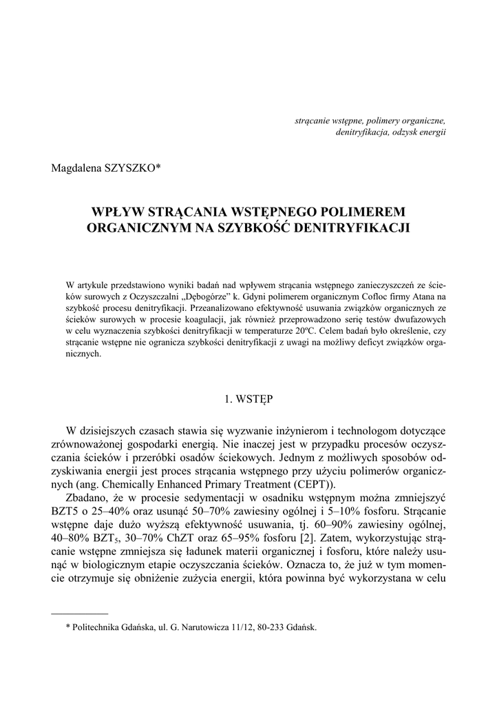 Wpływ strącania wstępnego polimerem organicznym na - Eko-DOk