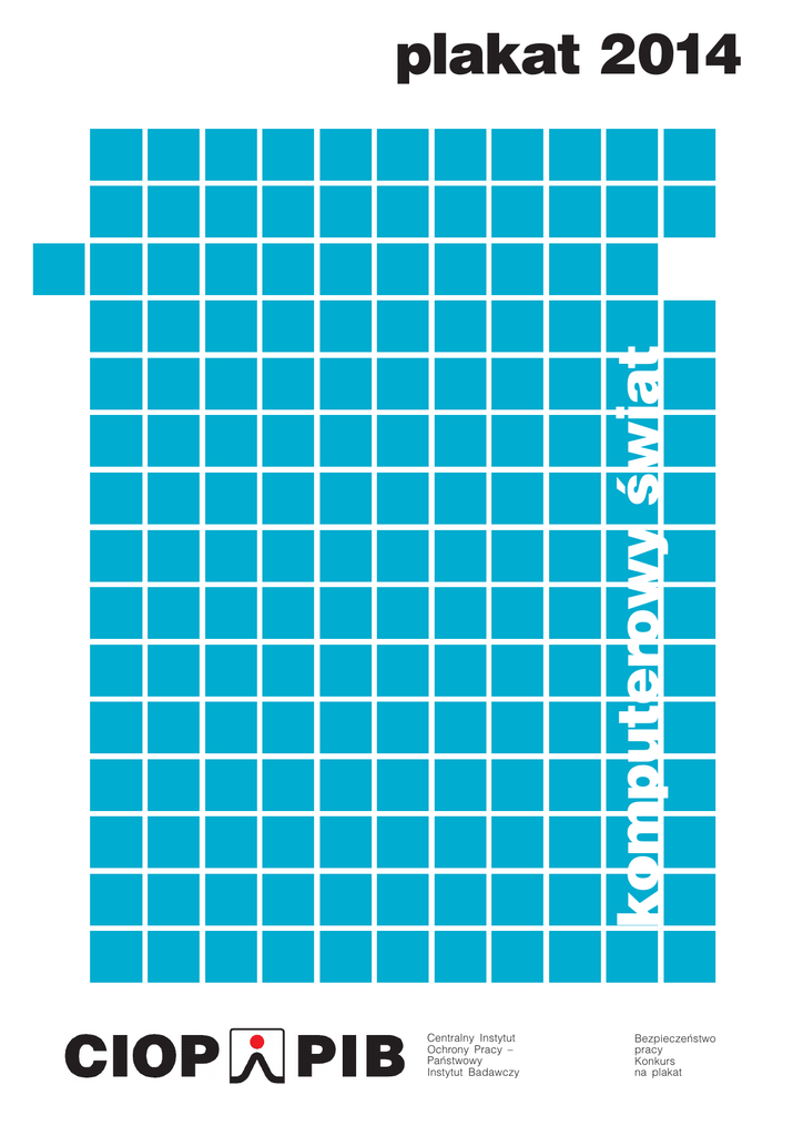 komputerowy świat plakat 2014 Centralny Instytut Ochrony Pracy – Państwowy Instytut Badawczy Bezpieczeństwo pracy Konkurs na plakat komputerowy świat Dziś chyba nikt z młodych ludzi nie wyobraża sobie życia bez telefonu komórkowego, smartfona, tabletu czy komputera. Komputeryzacja i informatyzacja, a więc korzystanie ze wszelkich elektronicznych udogodnień życia codziennego, objęły praktycznie wszystkie obszary ludzkich działań – zarządzanie przedsiębiorstwami, naukę, medycynę, szkolnictwo, bankowość, przemysł itp. Równolegle z intensywnym rozwojem komputeryzacji i informatyki wzrosła liczba osób wykorzystujących komputery w pracy, a przez to również narażonych na uciążliwości związane z pracą na stanowiskach komputerowych. Komputery, mimo że usprawniają pracę, coraz częściej przyczyniają się też do powstawania zagrożeń dla zdrowia i bezpieczeństwa pracowników. Niewłaściwa organizacja stanowisk komputerowych i spędzanie zbyt dużej ilości czasu przy komputerze skutkuje obciążeniem organizmu pozycją siedzącą, monotypią (czyli powtarzalnością pracy), czy też przeciążeniem wzroku. Przesadne użytkowanie Internetu określa się jako nałóg siecioholizmu. Skutki uzależnienia od komputera mogą mieć charakter: – fizyczny (m.in. bóle kręgosłupa, mięśni karku i nadgarstka, zmęczenie oczu, bóle głowy), – psychologiczny (m.in. rozdrażnienie, spadek sprawności psychofizycznej, problemy z koncentracją), – intelektualny (m.in. spadek koncentracji uwagi, niezdolność do racjonalnej selekcji informacji napotkanych w sieci, tzw. szok informacyjny), – społeczny (m.in. zaniedbanie obowiązków służbowych, brak kontaktu z otoczeniem). Nadużywanie komputera i Internetu stanowi szczególne zagrożenie dla dzieci i młodzieży – przyszłych uczestników rynku pracy. Wzrasta liczba uczniów z wadami postawy, skrzywieniem kręgosłupa, poważnymi wadami wzroku, uzależnieniem od komputera, który zastępuje często inne formy spędzania czasu wolnego, również te aktywne, niezbędne do prawidłowego rozwoju psychofizycznego dzieci. Komputeryzacja niesie ze sobą również stopniowe wypieranie z rynku pracowników niewykwalifikowanych, zmieniając na zawsze strukturę zatrudnienia, powodując alienację i frustrację pewnej części społeczeństwa. Świadomość zagrożeń związanych z wykorzystywaniem urządzeń i mediów elektronicznych jest niezbędna dla unikania tych zagrożeń i racjonalizacji swoich działań. komputerowy świat Patronat Minister Pracy i Polityki Społecznej Główny Inspektor Pracy Organizatorzy Centralny Instytut Ochrony Pracy – Państwowy Instytut Badawczy w Warszawie Wydział Form Przemysłowych Akademii Sztuk Pięknych w Krakowie Wydział Form Przemysłowych Akademii Sztuk Pięknych w Łodzi Wydział Wzornictwa Przemysłowego Akademii Sztuk Pięknych w Warszawie Temat Komputerowy świat Cel Uzyskanie oryginalnych projektów plakatów, które będą promowały problematykę bezpieczeństwa i ochrony zdrowia człowieka w środowisku pracy. Uczestnicy W konkursie mogą wziąć udział artyści plastycy, absolwenci i studenci uczelni i wydziałów plastycznych w kraju i za granicą. Dane techniczne Format plakatu: B2 – 70 × 50 cm w układzie pionowym. Plakat powinien mieć sztywne podłoże. Z tyłu plakatu, w prawym górnym rogu, należy umieścić w trwały sposób godło identyfikacyjne, składające się z sześciu różnych cyfr. Do każdego plakatu należy dołączyć trwale, np. nakleić z tyłu plakatu, oznakowaną tym samym godłem kopertę zawierającą pisemne oświadczenie (w załączeniu, opublikowane również na stronie internetowej www.ciop.pl/konkurs_na_plakat) oraz płytę CD lub DVD oznakowaną godłem (jeżeli plakat jest utrwalony także w wersji elektronicznej). Termin Plakaty z dopiskiem „Konkurs na plakat” należy doręczyć Organizatorowi pocztą, kurierem lub osobiście w terminie do 23 czerwca 2014 r. Adres Centralny Instytut Ochrony Pracy – Państwowy Instytut Badawczy ul. Czerniakowska 16, 00−701 Warszawa Wystawa Organizator przewiduje zorganizowanie dwóch wystaw pokonkursowych i wydanie katalogu, w którym znajdzie się nie więcej niż 50 plakatów wybranych przez Komisję Konkursową, w tym plakaty nagrodzone i wyróżnione. Przewidywany termin otwarcia pierwszej wystawy pokonkursowej, połączonej z wręczeniem nagród laureatom – 23 października 2014 r. komputerowy świat Komisja konkursowa Tomasz BOGUSŁAWSKI – Akademia Sztuk Pięknych w Gdańsku Marzena FLIS – Komisja Krajowa NSZZ „Solidarność” prof. ADAM GEDLICZKA – Akademia Sztuk Pięknych w Krakowie Renata GÓRNA – Ogólnopolskie Porozumienie Związków Zawodowych Joanna KAMIŃSKA – Centralny Instytut Ochrony Pracy – Państwowy Instytut Badawczy Katarzyna KITAJEWSKA – Główny Inspektorat Sanitarny prof. dr hab. med. DANUTA KORADECKA – Centralny Instytut Ochrony Pracy – Państwowy Instytut Badawczy Paweł MOŃKA – GAZ SYSTEM S.A. Mieczysław PIRÓG – Akademia Sztuk Pięknych we Wrocławiu prof. Władysław PLUTA – Akademia Sztuk Pięknych w Krakowie Marek STAŃCZYK – Akademia Sztuk Pięknych w Warszawie przedstawiciel Ministerstwa Pracy i Polityki Społecznej przedstawiciel Państwowej Inspekcji Pracy Nagrody III nagroda – 5000 zł III nagroda – 3000 zł III nagroda – 2000 zł oraz 5 wyróżnień po 1000 zł. Komisja Konkursowa ma prawo innego podziału nagród. Plakaty nagrodzone i wyróżnione pozostają własnością Centralnego Instytutu Ochrony Pracy i mogą być wykorzystane na wszystkich polach eksploatacji, natomiast pozostałe zakwalifikowane do wystawy i katalogu pozostają własnością Instytutu jedynie w zakresie wykorzystania do wystaw i wydruku katalogu. Nadesłanie prac na konkurs jest równoznaczne z przyjęciem wszystkich warunków regulaminu. Regulamin konkursu jest dostępny na stronie internetowej Instytutu: www.ciop.pl / konkur