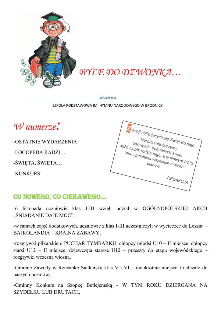 BYLE DO DZWONKA… - Szkoła Podstawowa im. Hymnu