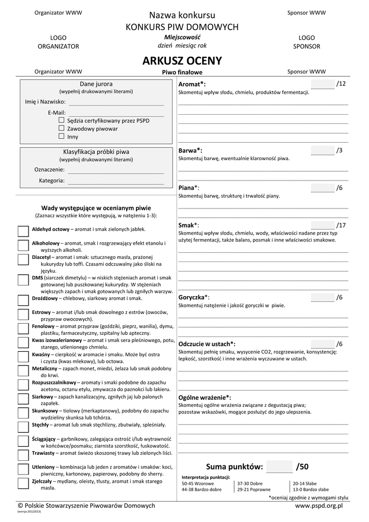 Arkusz oceny piwa v1.3 - Polskie Stowarzyszenie Piwowarów