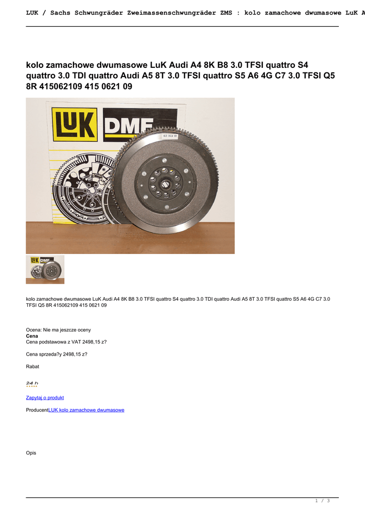 kolo zamachowe dwumasowe LuK Audi A4 8K B8 3.0 TFSI quattro