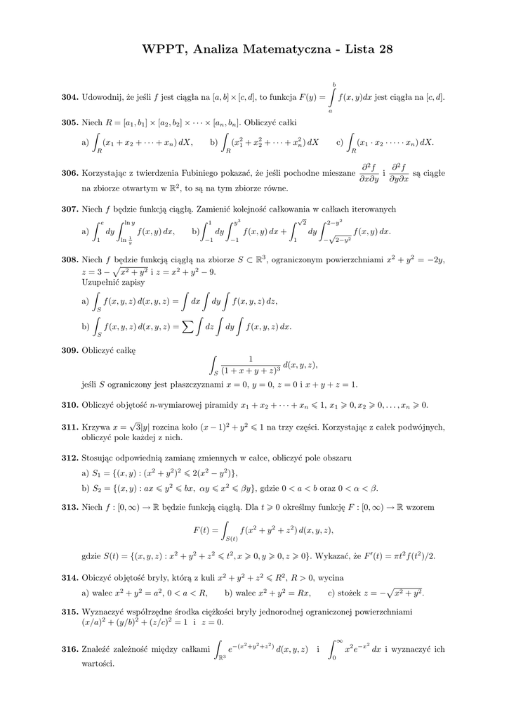 WPPT, Analiza Matematyczna - Lista 28