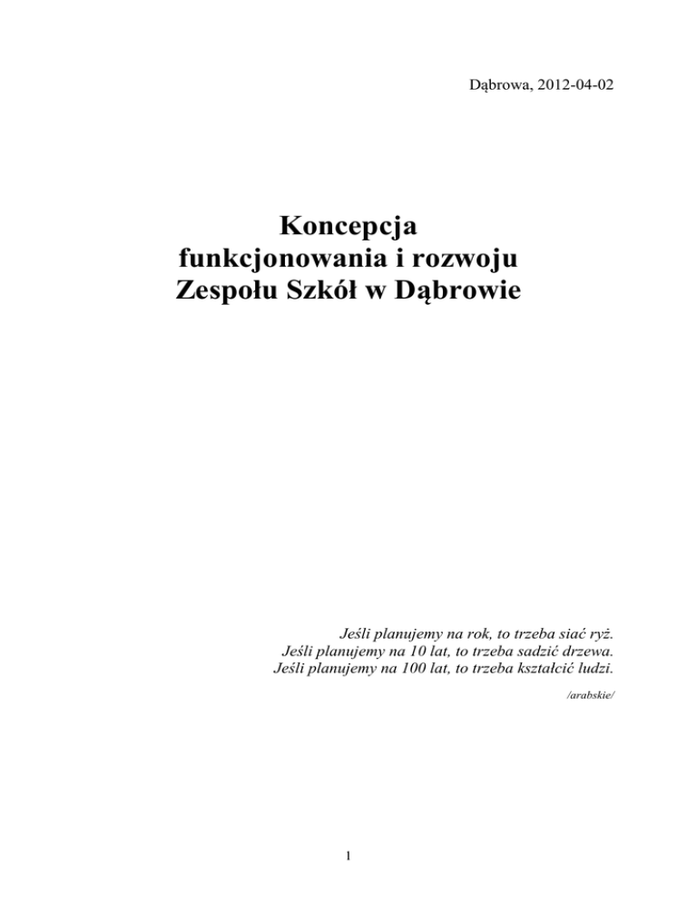 Koncepcja funkcjonowania i rozwoju Zespołu Szkół w Dąbrowie