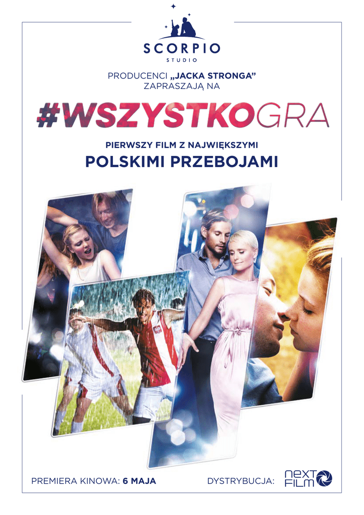 PRODUCENCI „JACKA STRONGA” ZAPRASZAJĄ NA PIERWSZY FILM Z NAJWIĘKSZYMI POLSKIMI PRZEBOJAMI PREMIERA KINOWA: 6 MAJA DYSTRYBUCJA: Opis filmu #WszystkoGra to historia o poszukiwaniu szczęścia, miłości i radości życia. Zosia (Eliza Rycembel) próbuje zmienić świat za pomocą sztuki. Jej mama (Kinga Preis) niespodziewanie spotyka na swojej drodze kogoś wyjątkowego. Babcia (Stanisława Celińska) ukrywa tajemnicę z przeszłości. Trzy kobiety spróbują ocalić rodzinny dom. Przeżyją niejedną perypetię, by przekonać się, czego pragną. Czy uda im się to zdobyć? W niezwykłej historii o miłości partnerują im Sebastian Fabijański, Antoni Pawlicki i Bartosz Żuchowski. Reżyseria Agnieszki Glińskiej i zdjęcia nominowanego do Oscara Pawła Edelmana gwarantują rozrywkę na najwyższym poziomie. Wszystko to w rytmie najpiękniejszych polskich piosenek w zupełnie nowych aranżacjach. Niezapomniane melodie i doskonałe teksty najlepszych autorów –od Agnieszki Osieckiej, Jonasza Kofty przez Maanam po T.Love. Nowy blask tych przebojów podkreślą najlepsi tancerze w porywających choreografiach Agustina Egurroli. Aktorzy o filmie KINGA PREIS - ROMA: „Piosenki, które wykonujemy to najpiękniejsze polskie hity” O ROLI: Moja bohaterka bardzo młodo urodziła dziecko i podporządkowała swoje życie rodzinie. Grubą krechą odcięła swoje ambicje i marzenia – to, że chciała się realizować jako artystka. Myśli, że już nic ciekawego się jej nie przydarzy... Aż tu nagle spotyka na swojej drodze faceta. To jest trochę opowieść o marzeniach, o tym że ludzie z zupełnie różnych światów mogą poczuć coś do siebie, mogą spróbować być razem, mogą mieć wspólne pasje. O FILMIE: #WszystkoGra opowiada o tym, że bardzo usilnie szukamy swojego szczęścia, wyświetlamy je sobie na tysiące możliwych sposobów, a ono jest tuż za rogiem. Można powiedzieć, że to film o miłości – na pewno wyśpiewanej, wytańczonej. Piosenki, które wykonujemy, to najpiękniejsze polskie hity. Odkrywamy je muzycznie na nowo i naszą opowieścią trochę odchodzimy od tego, jak zawsze były interpretowane. STANISLAWA CELIŃSKA - BABKA: „Ten film jest bardzo prawdziwy” O ROLI: Ten film opowiada przede wszystkim o miłości, ale też o samotności. Najmłodsza bohaterka – Zosia chce wyjechać za granicę. Moja filmowa córka, czyli Kinga Preis, jest niezadowolona, bo jej marzenia się nie spełniły i powoli zaczyna rozumieć, że już się nie spełnią. Natomiast moja bohaterka – babcia, ciągle tęskni za dawnymi latami. Wszystkie trzy mają przed sobą tajemnice i w pewnym momencie one wychodzą na jaw… O FILMIE: Agnieszka Glińska, która jest wspaniałą reżyserką tak poprowadziła aktorów, że są bardzo naturalni. Film jest bardzo prawdziwy! Historia jest niewymuszona, nie ma tu nic na siłę. To właśnie mnie w tej opowieści najbardziej ujęło. Ponadto w filmie można usłyszeć bardzo ciekawe współczesne aranżacje największych polskich przebojów. A wszystko to pięknie sfotografowane. ELIZA RYCEMBEL - ZOSIA: „#WszystkoGra to bardzo przewrotny tytuł” O ROLI: W filmie #WszystkoGra wcielam się w postać Zosi, studentki ASP. Moja bohaterka jest przedstawicielką młodego pokolenia, które chce za pomocą sztuki zwrócić uwagę na pewne problemy, zwrócić na nie uwagę społeczeństwa. Wcielam się również w postać swojej prababci. W filmie są retrospekcje, w których przenosimy się do lat 40, później do lat 60. O FILMIE: #WszystkoGra to bardzo przewrotny tytuł, bo jest zarówno związany z muzyką i tańcem, jak i z tym, o czym w istocie jest ta opowieść. Nie wiemy przecież, czy „wszystko gra”. To film o radości, o miłości, o najróżniejszych emocjach, jakie nami targają. O relacjach, o tym, co ludzie są sobie w stanie dać w danym momencie życia. Jak o siebie dbają i sobie pomagają. Ten film jest bardzo prawdziwy. SEBASTIAN FABIJAŃSKI - STASZEK BORUCKI: „To piękne kino, piękna historia. Rozrywka najwyższej klasy” O ROLI: Staszek jest piłkarzem. Gdybym miał go porównać do jakiegoś popularnego piłkarza, byłby to Robert Lewandowski. Do tej pory Staszkowi wydawało się, że wszystko jest dobrze, aż tu nagle coś zaczyna go uwierać. Przeszkadza mu jego pozycja medialna, popularność. I właśnie w tym momencie pojawia się w jego życiu kobieta, którą gra Kinga Preis, która w zupełnie nieoczekiwany sposób zaczyna wypełniać jakąś lukę, która powstała z biegiem czasu w trakcie jego kariery zawodowej. O FILMIE: #WszystkoGra to piękne kino, piękna historia, w sposób delikatny i subtelny przyozdobiona estetyką musicalową. Wszyscy chcieliśmy nadać wykonywanym przez nas piosenkom emocjonalny kierunek, tak by muzyka była adekwatna do budowanych przez nas scen. Dla mnie to było największe wyzwanie w pracy na planie tego filmu. Myślę, że ten film jest w stanie wzruszyć nawet największego twardziela, ale równocześnie będzie świetną rozrywką w najlepszym wydaniu. ANTONI PAWLICKI - WOLAND I ANTON LIS: „To jest film dla wszystkich” O ROLI: Gram dwie postaci: Anton i Wolanda Lisa. Anton Lis jest oficerem, który adoruje prababcię Zosi. Woland Lis to postać bardziej diaboliczna. Jest właścicielem wielkiej korporacji, która zajmuje się wykupowaniem nieruchomości i budowaniem nowej wizji miasta. Nie chodzi jednak tylko o urbanistykę, raczej o ludzi, o tworzenie nowej rzeczywistości. O FILMIE: To banał, co teraz powiem, ale to jest film dla wszystkich. Naprawdę tak sądzę. Jest oparty na szlagierach, które zna starsze pokolenie, ale są one w filmie zaaranżowane w bardzo nowoczesny sposób, co to z kolei może przyciągnąć młodych ludzi. Jest pełen muzyki i energii, dlatego myślę, że jest to film zarówno do młodych ludzi, jak i dla tych, którzy pamiętają jeszcze te kawałki z dawnych lat. BARTOSZ ŻUCHOWSKI - BARTEK: „To film o relacjach: z przyjaci