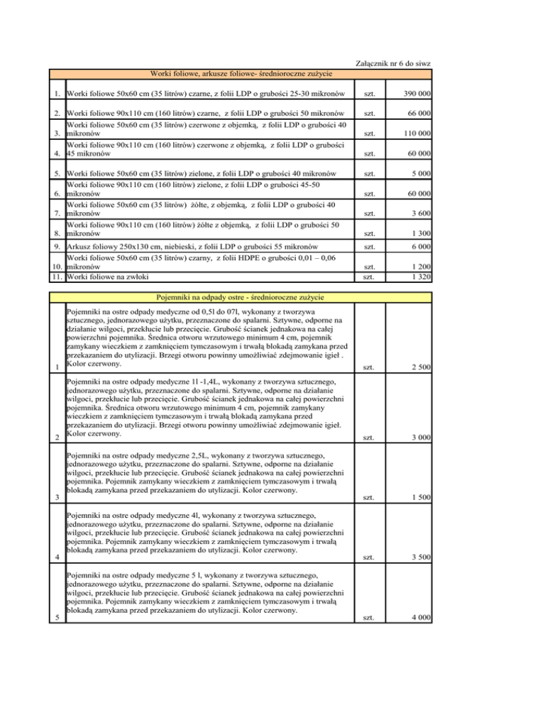 Załącznik nr 6 do siwz Worki foliowe, arkusze foliowe