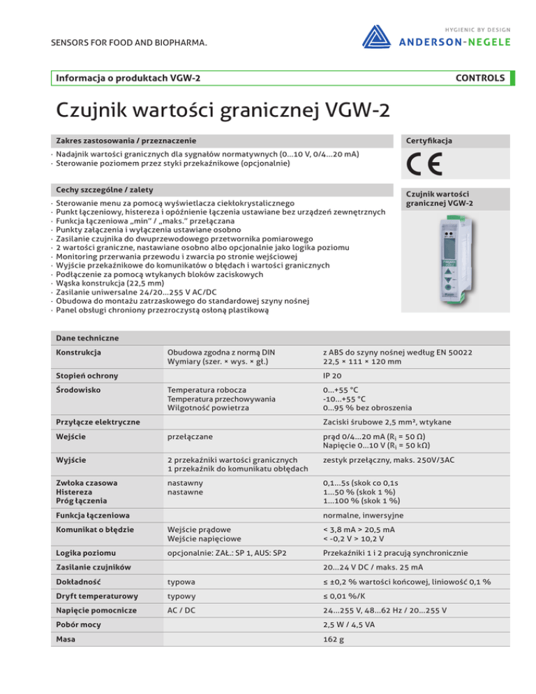 Czujnik wartości granicznej VGW-2 - Anderson
