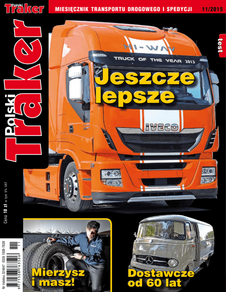 MIESIĘCZNIK TRANSPORTU DROGOWEGO I SPEDYCJI 11/2015 test Nr Indeksu 324647 ISSN 1508-7638 Cena 10 zł w tym 5% VAT Jeszcze lepsze Mierzysz Dostawcze i masz! 60 lat Już trudniej naod granicach... humor 11/2015 Traker 3 spis treści Humor Spis treści Od redakcji 3 4 5 Wywiad Rozmowa „Polskiego Trakera” z wiceprezesem spółki Anwim SA Pawłem Grzywaczewskim, odpowiadającym za sieć stacji Moya Floty to dla nas priorytet 6 Aktualności 8 Test 16 Iveco Stralis Hi-Way AS440S48T/P Silnikowi niczego nie można zarzucić, natomiast zautomatyzowana skrzynia biegów sprawia wrażenie nieczułej na kąt wzniesienia, co nie może być prawdą, skoro współpracuje z funkcją EcoRoll. Klub Nasze stowarzyszenie Doblo Cargo Maxi 46 Nie naruszając ani kształtu, ani podstawowych parametrów, bo te były bardzo dobre, Włosi poprawili różne szczegóły i detale, głównie te mające wpływ na funkcjonalność, ale i na koszty eksploatacji. Samouczek 51 Panorama firm Rybak Transport – Syców Wymagania dotyczące konstrukcji pojazdów cz. 2 Porty 24 Sonda 28 DKV wyróżniło najlepszych! Największy na Opolszczyźnie DAF ITS 33 37 52 Rynek Mniej egzotyki? 38 Rynek ciężarowy w Indiach jest terenem walki między lokalnymi producentami pojazdów starszego typu a europejskimi markami wytwarzającymi w montowniach ciężarówki w europejskich technologiach. Z pasażerami na gapę 62 64 Tuning „Piraci z Karaibów” 66 Ci ągnik siod ł ow y Vol vo F H12 z grafiką „Piraci z Karaibów” to wizytówka firmy Lugras z Krzeszowa Górnego. Samochód ten ma moc 420 KM i został wyprodukowany w 2005 roku. Historia Star 29 – Sachs Trans 68 To właśnie tym Starem przed niemal 30 laty, bo w roku 1986, właściciel firmy Marek Sachs zaczął świadczyć usługi transportowe dla okolicznych mieszkańców. Sport Za kulisami wyścigu Żartem 70 72 Trendy Dr Marcus Horoskop Prenumerata 73 74 76 Giełda Eurotax Ogłoszenia Krzyżówka MIESIÊCZNIK TRANSPORTU DROGOWEGO I SPEDYCJI ISSN 1508-7638 78 79 82 REPREZENTANT POLSKI W KONKURSACH INTERNATIONAL TRUCK OF THE YEAR ADRES REDAKCJI: 32-005 Niepołomice, ul. Roweckiego 6, tel. (12) 281-14-62, tel./faks (12) 644-21-37 • www.polskitraker.pl • e-mail: redakcja@polskitraker.pl • REDAKTOR NACZELNY: Aleksander Głuś • REDAKTOR TECHNICZNY: Dariusz Drukała • S E K R E T A R Z R E D A K C J I : G r z e g o r z R a m z a • K O R E K T A : M a r i a P a w l i k • O P R AC O W A N I E G R A F I C Z N E : Neo-Studio Reklamy, tel. (12) 281-00-08 • OGŁOSZENIA I REKLAMA: tel./faks (12) 281-14-62 • WYDAWCA: FWHU BBZ, 32-005 Niepołomice, ul. Roweckiego 6, tel./faks (12) 644-21-37 • Redakcja nie odpowiada za treść zamieszczonych reklam i ogłoszeń • Tytuł i znak graficzny zastrzeżone. Prawa autorskie zastrzeżone. Przedruki za zgodą redakcji. Redakcja zastrzega sobie prawo dostosowania materiałów do potrzeb wydawnictwa. Magazyn ukazuje się raz w miesiącu. Artykułów i zdjęć niezamówionych redakcja nie zwraca • Nakład 10 000 egz. 4 Traker 11/2015 60 Traker miesiąca Stanisław Bursztynowicz – Epo-Trans, Tychy Informacje 59 Kontrole Actros jeszcze bardziej oszczędny 24 Renault Contruction 30 Superjubileusz 34 Zwieńczeniem 25. rocznicy powstania Inter Cars była 15. edycja targów części zamiennych do pojazdów różnych typów i sprzętu warsztatowego oraz wyjątkowa jubileuszowa gala. Najlepsi w Optifuel Challenge Polska 48 Wielki finał w Lizbonie 50 Co było przed Sprinterem? 56 Michelin Tire Care 54 ADR Reportaż Nowości 44 Minitest INTERNATIONAL VAN OF THE YEAR MIESIĘCZNIK TRANSPORTU DROGOWEGO I SPEDYCJI 9/2015 test Nowszy MX 11 Drodzy Czytelnicy N iedawno mogło się wydawać, że miejsca, do których kierowcy niemal codziennie muszą obowiązkowo przyjeżdżać, czyli stacje benzynowe, zmierzają w dziwnym kierunku. Bo większość starała się urządzać jak największe sklepy oraz bary. Okazuje się jednak, że nie Cena 10 zł w tym 5% VAT jest to jedyna możliwa filozofia prowadzenia biznesu stacyjnego. Czasem potrzebny jest sklep albo knajpa, ale zwykle kierowca chce szybko, wygod- Nr Indeksu 324647 ISSN 1508-7638 nie i tanio zatankować – mówią szefowie jednej z najmłodszych sieci stacji. e-Booking Truck The Best of... !! PT 09 2015.indd 1 Inne podejście, zobaczymy, czy rozwój tej sieci potwierdzi takie zmiany 2015-08-19 18:09:50 SuperPakiet – wydanie papierowe + elektroniczne + Informator Kalendarz PT 2016 – gratis** – cena 130 zł – dla członków SKPT* – 100 zł. tylko wydanie papierowe + Informator Kalendarz PT 2016 ** – cena 110 zł, dla członków SKPT* – 100 zł. tylko e-wydanie (elektroniczne) – cena 50 zł, dla członków SKPT* – 30 zł w zwyczajach kierowców. A co z naszym stosunkiem do tankowania z automatów? Do tej pory nie cieszyły się specjalnym zainteresowaniem. Ale poczekajmy… W naszym teście poznacie samochód, który nie jest liderem rankingów sprzedaży, ale widujemy go codziennie na trasach. Ma kilka odmienności, a przynajmniej ze dwie stawiają go przed konkurentami. Okazuje się zresztą, że wyniki testu kwestionują umiarkowane wyniki handlowe Stralisa. Warto sprawdzić! Po przerwie, licząc od momentu wprowadzenia pojazdów Euro-6, zaczynają MAGAZYN PASAŻERSKIEGO TRANSPORTU DROGOWEGO 4/2015 (VII-VIII) Futura Euro-6 prezentacja Bus Bus się pojawiać nowe rozwiązania i komponenty. Mercedes zaskoczył nową wersją silnika, który był podstawowym napędem dla Actrosa. Zmiany wyraźnie poprawiły osiągi, a nadeszły szybciej, niż można się było spodziewać! Na podobnej zasadzie Renault Trucks dopracowało gamę samochodów terenowych, ongiś pokazaną w wersji Euro-6, ale teraz już C i K to niemal pełna w tym 5% VAT oferta do różnych zastosowań budowlanych i komunalnych. W tym samym Nr Indeksu 253057 ISSN 1734-9583 Cena 10 zł czasie Francuzi przeprowadzili swój konkurs Optifuel, także demonstrujący !! PTB 04 2015.indd 1 dojrzałość i ekonom