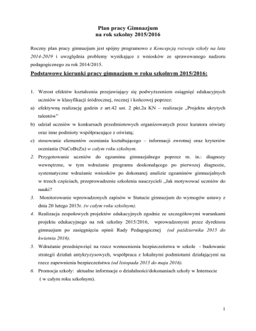 1. plan pracy gimnazjum w roku szkolnym 2015/2016