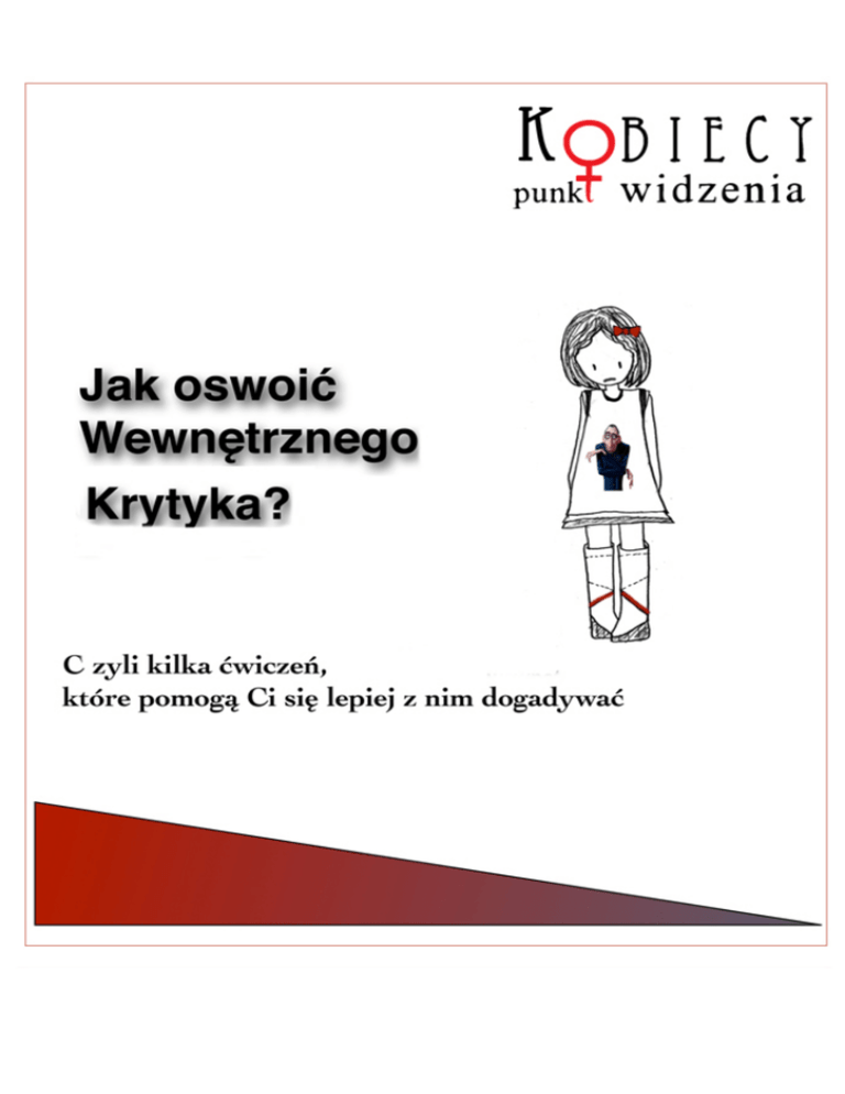 Witaj, Cieszę się, że postanowiłaś spróbować oswoić swojego Wewnętrznego Krytyka. Mam nadzieję, że zdania i ćwiczenia pomogą Ci “zaprzyjaźnić się” z nim i przestać być podatną na jego wpływ. Doceniam czas, który poświęcasz na swój własny rozwój dlatego pozwolę sobie podzielić się z Tobą pewną radą... Spróbuj wykonywać ćwiczenia na bieżąco, w trakcie czytania, bo coś co zostawiamy “na później” zazwyczaj nigdy nie ujrzy ponownie światła dziennego. Mi samej często zdarzało się np czytać książkę, w której należało wykonać pewne zadania i opuszczać je. Przerzucić kartkę, dwie, obiecując sobie, że kiedyś do tego wrócę i to zrobię... jak się zapewne domyślasz to nigdy nie nastapiło... Dlatego gorąco namawiam Cię do przeczytania i wykonywania (na tyle, na ile porafisz ) ćwiczeń, bo bez tego, bez stawienia mu czoła nawet 100 stronnicowa książka nie zadziała,- to Ty i Twoje działanie są kluczem! Przedstawię Ci w tym skrypcie kilka ćwiczeń, które podzieliłam na dni. Oczywiście możesz je wykonać wszystkie od razu, według mnie jednak zadziałają one lepiej, wykonywane w pewnym odstępie czasowym. Jak oswoić wewnętrznego Krytyka? Zaczniemy pomalutku... Nie uda Ci się Jesteś do bani To nie dla Ciebie Jesteś beznadziejna Na pewno nie dasz rady -to tylko niektóre teksty podsuwane nam przez wewnętrznego krytyka. Czy są Ci one znajome? Jakie wywołują emocje? Mało kto lubi być krytykowany, mało kto potrafi też dobrze sobie z krytyką radzić, a co dopiero z krytyką wewnętrzną, taką, którą słyszymy w głowie Przejdźmy więc do ćwiczenia pierwszego: weź kartkę i długopis i zrób listę ulubionych powiedzonek Twojego wewnętrznego krytyka (ważne, aby napisać to na kartce) następnie uszereguj je od najbardziej Cię raniącego/ograniczającego do najmniej Wiem, nie jest to łatwe, trzeba trochę pomyśleć, przypomnieć sobie nieprzyjemne sytuacje, trzeba to napisać... no ale przecież naszym celem jest oswojenie Pana K., prawda? Dasz radę! Gdy zakończysz swoją listę, odłóż ją w bezpieczne miejsce i zrelaksuj się... To wszystko na dzisiaj. Jak oswoić wewnętrznego Krytyka? Mam nadzieję, że pomimo oporów udało Ci się wykonać ćwiczenie z poprzedniego emaila i, że jesteś gotowa na więcej. Dziś będzie troche więcej i dłużej, no, ale przecież zmagamy się z powaznym przeciwnikiem-naszym wewnętrznym krytykiem... Zaczniemy od tego, skąd bierze się wewnętrzny krytyk Powstaje i rośnie w siłę latami. Do jego pojawienia się i wzrostu przyczyniają się ludzie, z którymi obcujemy. Rodzice, którzy “dla naszego dobra” w nieprzyjemny sposób poprawiali nas, nauczyciele w szkole, którzy nie potrafili inaczej dać informacji zwrotnej o naszym zachowaniu czy stanie wiedzy tylko przez krytykę, dalsza rodzina, czyli "wszechwiedzące" ciocie, babcie, nasi partnerzy, szefowie w pracy, a nawet rówieśnicy, często w niezamierzony sposób poprzez różnego rodzaju przykre sytuacje. Rodzice często próbują poprawiać “problemy”, które wydaje im się, że w nas widzą i mówią wszelkiego rodzaju rzeczy by nas “naprawić”, badź tez dopasować do ich wizji. Wyrażają swoje opinie na temat tego jak wyglądamy, naszego ciała, włosów, ubrań, sposobu chodzenia, mówienia, itp. Komentując nasze zachowania, zauważają przede wszystkim te negatywne i je krytykują, tworząc przy tym pewne schematy myślowe u nas i kładąc podwaliny pod wewnętrznego krytyka. Proporcjonalnie ilość krytyki w stosunku do zauważania dobrych rzeczy i chwalenia jest zachwiana. Gdybyś miała okazję podsumować i policzyć ile razy byłaś przez nich, bądź tez innych ludzi z naszej listy skrytykowana, zganiona przez okres dzieciństwa i dorastania, ile tysięcy razy usłyszałaś, że gdzieś w czymś jesteś niedoskonała, że coś jest z Tobą nie tak nie byłabyś w stosunku do siebie aż tak surowa... Kłamstwo powtarzane setki, tysiecy razy, w dodatku przez ludzi, którzy deklaruja, że Cię kochają i chcą dla Ciebie dobrze, po pewnym czasie przestaje być kłamstwem, zaczynamy w nie wierzyć. Czy chcę przez to powiedzieć, że ktoś świadomie wyrzadził Ci krzywdę? nie Ktoś nie potrafił inaczej, w jego odczuciu to była najlepsza forma okazania Ci uczucia No, ale wróćmy do efektu, do tego, że nasz wewnętrzny krytyk dość konkretnie utrudnia nam życie, sabotuje nasze działania i chcemy coś z tym zrobić... Paradoksem jest i wymaga to pewnego aktu odwagi, zrozumienie i zaakceptowanie tego, że krytyk powstał po to, aby nas wspierać. Jakkolwiek dziwnie to brzmi biorąc pod uwagę ile przykrości i problemów nam on dostarcza, kiedyś podjełyśmy decyzję,(najprawdopodobniej nieświadomie), że potrzebujemy takiego głosu w środku, który będzie ostrzegał przed popełnieniem błędu. Jak oswoić wewnętrznego Krytyka? W końcu lepiej usłyszeć od siebie samego coś nieprzyjemnego, niż narazić się na brak akceptacji ze strony innych. Lepiej powstrzymać działanie, niż popełnić błąd skutkujący odrzuceniem. Krytyk tak naprawdę chce naszego dobra, chce abyśmy wypadli odpowiednio, byli lubiani przez innych, odnosili sukcesy, i tak dalej. Problemem jest to, że krytyk nie wie kiedy przestać. Nie rozumie kiedy już wystarczy. Ma tendencję do rozrastania się, marudzenia, ingerowania nonstop, aż wydostaje się spod kontroli i zaczyna powodować więcej szkód niż pożytku. W tym momencie, jego pierwotna funkcja kompletnie przestaje mieć sens. Nasz wewnętrzny krytyk działa na poziomie dziecka, którym kiedyś byłyśmy, dziecka, które uważa, że wszyscy wkoło są mądrzejsi od niego samego. Pamiętajmy, że przez sporą część naszego dziecięcego życia dorosły, a tym bardziej rodzic jest dla nas bogiem wszechmogącym i wszechwiedzącym. W związku z tym, krytyk jest jakby echem wymagań stawianych nam przez otoczenie. I tu dochodzimy do se