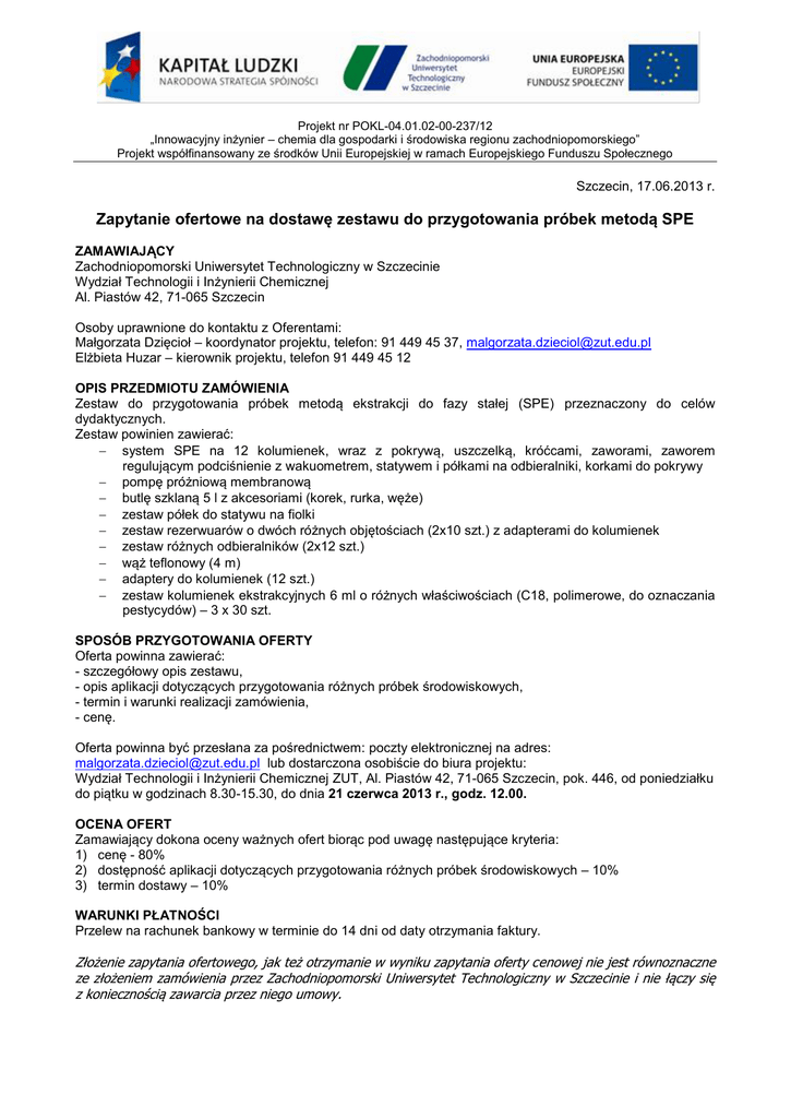 Zapytanie ofertowe na dostawę zestawu do przygotowania próbek