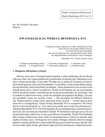 EWANGELIZACJA WEDŁUG BENEDYKTA XVI
