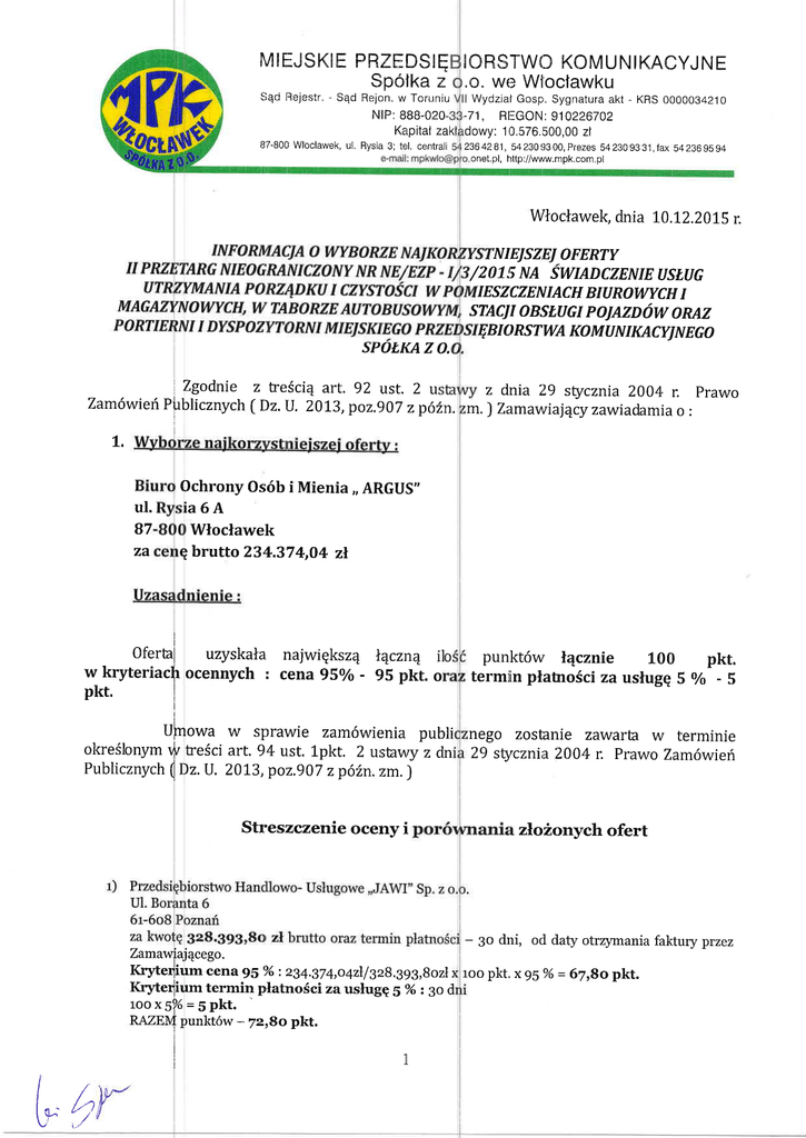 Kryteriium cena 95 a/o : 2gl.!/ {,o 4zlI gz9.gL;3, B ozl : roo pkt. xgS% = 67,8o pkt.