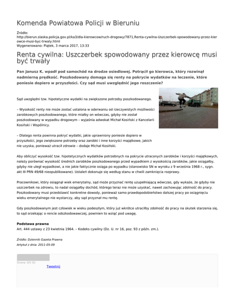 Komenda Powiatowa Policji w Bieruniu Renta cywilna: Uszczerbek