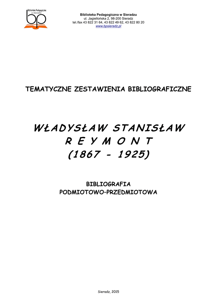 Reymont Władysław Stanisław - Biblioteka Pedagogiczna w Sieradzu