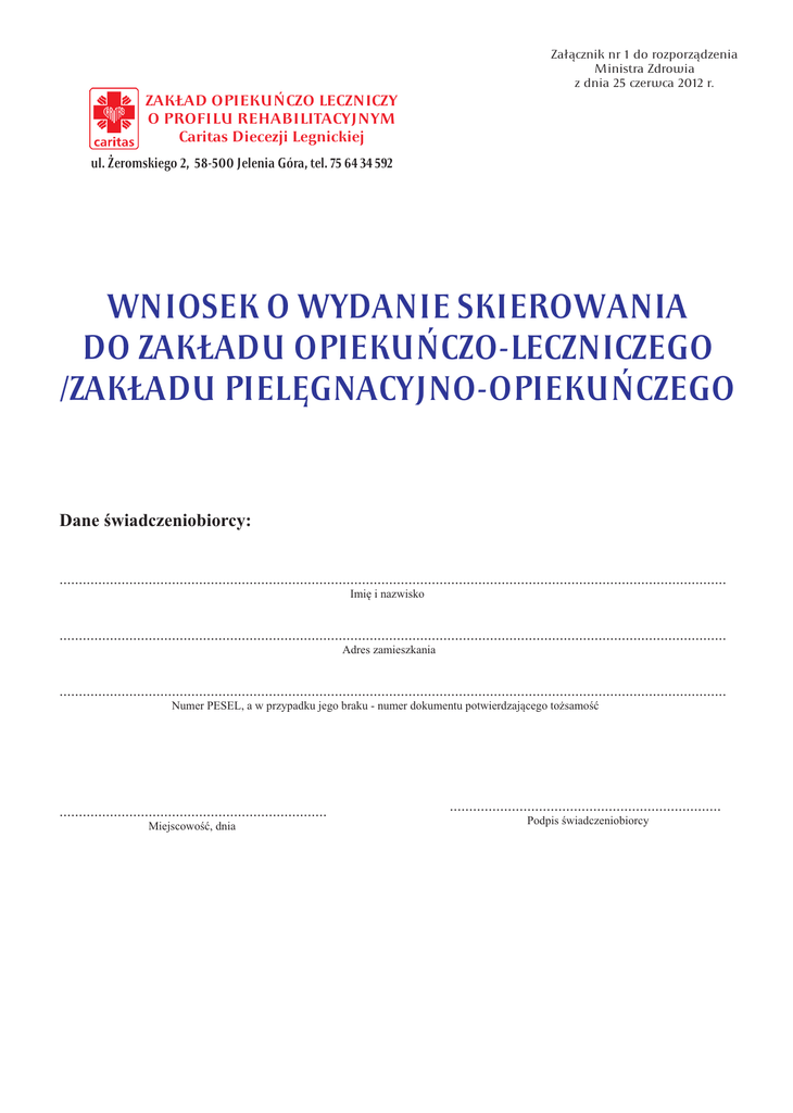Wniosek o wydanie skierowania do Zakładu Opiekuńczo