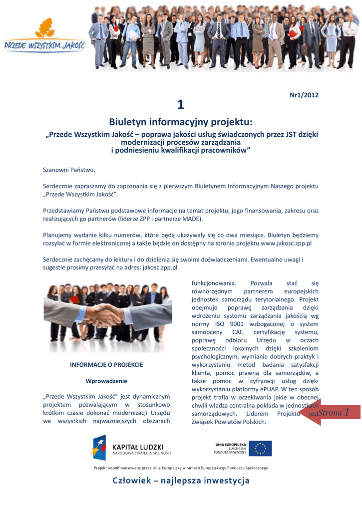 rozsyłać w formie elektronicznej a także będzie on dostępny na stronie projektu www.jakosc.zpp.pl