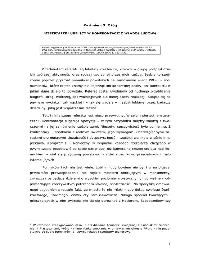 Rzeźbiarze lubelscy w konfrontacji z władzą ludową