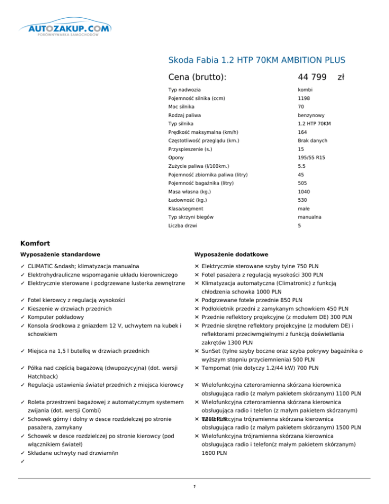 Skoda Fabia 1.2 HTP 70KM AMBITION PLUS
