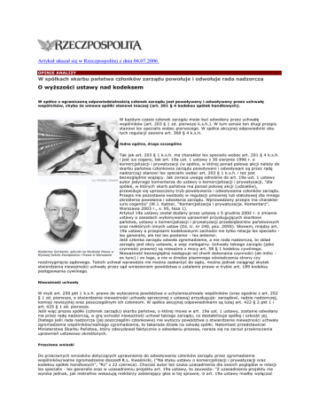 kodeksu spółek handlowych", "Rz" z 22 czerwca). Chociaż autor też szuka uzasadnienia dla swoich poglądów w relacji