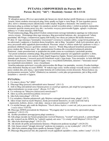 przez siedem dni, jeść macę, i opowiadać historię ich wybawienia swoim dzieciom. Parsza kończy się