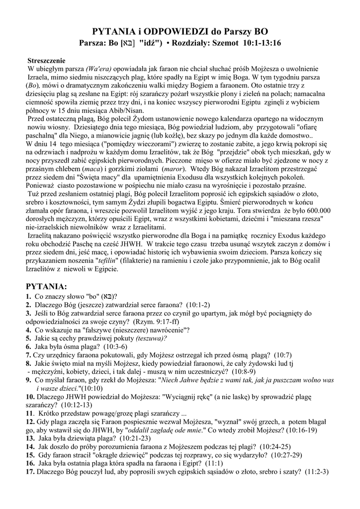 Parsza: Bo [" ]בּאidź") • Rozdziały: Szemot 10:1-13:16