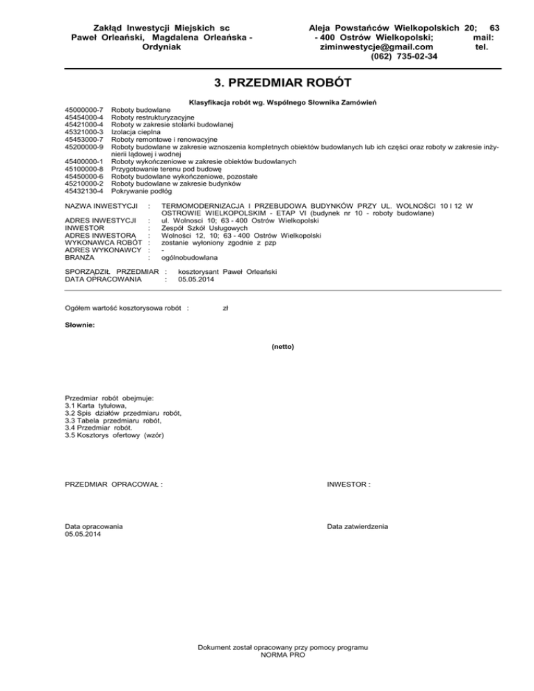 Zakłąd Inwestycji Miejskich sc Paweł Orleański, Magdalena Orleańska Ordyniak Aleja Powstańców Wielkopolskich 20; 63 - 400 Ostrów Wielkopolski; mail: [email protected] tel. (062) 735-02-34 3. PRZEDMIAR ROBÓT 45000000-7 45454000-4 45421000-4 45321000-3 45453000-7 45200000-9 45400000-1 45100000-8 45450000-6 45210000-2 45432130-4 Klasyfikacja robót wg. Wspólnego Słownika Zamówień Roboty budowlane Roboty restrukturyzacyjne Roboty w zakresie stolarki budowlanej Izolacja cieplna Roboty remontowe i renowacyjne Roboty budowlane w zakresie wznoszenia kompletnych obiektów budowlanych lub ich części oraz roboty w zakresie inżynierii lądowej i wodnej Roboty wykończeniowe w zakresie obiektów budowlanych Przygotowanie terenu pod budowę Roboty budowlane wykończeniowe, pozostałe Roboty budowlane w zakresie budynków Pokrywanie podłóg NAZWA INWESTYCJI : ADRES INWESTYCJI INWESTOR ADRES INWESTORA WYKONAWCA ROBÓT ADRES WYKONAWCY BRANŻA : : : : : : TERMOMODERNIZACJA I PRZEBUDOWA BUDYNKÓW PRZY UL. WOLNOŚCI 10 I 12 W OSTROWIE WIELKOPOLSKIM - ETAP VI (budynek nr 10 - roboty budowlane) ul. Wolnosci 10; 63 - 400 Ostrów Wielkopolski Zespół Szkół Usługowych Wolności 12, 10; 63 - 400 Ostrów Wielkopolski zostanie wyłoniony zgodnie z pzp ogólnobudowlana SPORZĄDZIŁ PRZEDMIAR : DATA OPRACOWANIA : kosztorysant Paweł Orleański 05.05.2014 Ogółem wartość kosztorysowa robót : zł Słownie: (netto) Przedmiar robót obejmuje: 3.1 Karta tytułowa, 3.2 Spis działów przedmiaru robót, 3.3 Tabela przedmiaru robót, 3.4 Przedmiar robót. 3.5 Kosztorys ofertowy (wzór) PRZEDMIAR OPRACOWAŁ : INWESTOR : Data opracowania 05.05.2014 Data zatwierdzenia Dokument został opracowany przy pomocy programu NORMA PRO RB 05.05.2014 (PR) 3.2 Spis działów przedmiaru robót Lp. Nazwa działu Od Do TERMOMODERNIZACJA I PRZEBUDOWA BUDYNKÓW PRZY UL. WOLNOŚCI 10 I 12 W OSTROWIE WIELKOPOLSKIM - ETAP VI (BUDYNEK NR 10) 1 KONSTRUKCJA SALI WIDOWISKOWEJ 1 30 2 KONSTRUKCJA STROPU NAD SALĄ WIDOWISKOWĄ (STROP PODDASZA NIEUŻYTKOWE- 31 65 GO) 3 WYDZIELONA KLATKA SCHODOWA 66 90 4 WITRYNY P.POŻ. 91 91 5 TERMOMODERNIZACJA STROPU PODDASZA BUDYNKU NR 10 92 114 6 ZWIĘKSZENIE ODPORNOŚCI OGNIOWEJ STROPÓW BUDYNKU DO REI 60 115 116 7 ŚCIANY I SUFITY 117 142 8 ROBOTY WYKOŃCZENIOWE SALI WIDOWISKOWEJ 143 167 9 STOLARKA DRZWIOWA 168 170 10 ROBOTY WYKOŃCZENIOWE 171 174 11 WYSTRÓJ GALERII 175 179 12 ROBOTY MUROWE, KOMINY WENTYLACYJNE 180 190 13 POSADZKI 191 196 -2- Norma PRO Wersja 4.21 RB 05.05.2014 (PR) 3.3 Tabela przedmiaru robót Lp. Podstawa Opis i wyliczenia j.m. Poszcz Razem TERMOMODERNIZACJA I PRZEBUDOWA BUDYNKÓW PRZY UL. WOLNOŚCI 10 I 12 W OSTROWIE WIELKOPOLSKIM - ETAP VI (BUDYNEK NR 10) 1 45000000-7 KONSTRUKCJA SALI WIDOWISKOWEJ 1 KNR-W 4-01 Wykucie bruzd pionowych 1 x 1 ceg. w ścianach z cegieł na zaprawie cemen- m d.1 0341-07 towo-wapiennej (pod słupy żelbetowe) (0.32+3.41)*2*2<parter> m 14.920 (0.37+3.23)*2*2<I piętro> m 14.400 (0.16+0.47+3.23)*2*1<II piętro> m 7.720 (11.16-7.17)*2*1 m 7.980 RAZEM 45.020 2 KNR-W 2-02 Przygotowanie i montaż zbrojenia elementów budynków i budowli - pręty żet d.1 0259-02 browane poz.1*18*0.888/1000*1 t 0.720 RAZEM 0.720 3 KNR-W 2-02 Przygotowanie i montaż zbrojenia elementów budynków i budowli - pręty gład- t d.1 0259-01 kie (0.40+0.25+0.40+0.25+0.05+0.05)*poz.1/0.06*0.222/1000 t 0.233 RAZEM 0.233 4 KNNR 2 Deskowanie systemowe drobnowymiarowe słupów prostokątnych m2 d.1 0102-04 (0.24+0.30+0.24)*(0.32+3.41)*4<parter> m2 11.638 (0.29+0.30+0.29)*(0.37+3.23)*2*1<I piętro> m2 6.336 (0.24+0.30+0.24)*(0.37+3.23)*2*1 m2 5.616 (0.37+0.30+0.37)*4.80*2*1<II piętro> m2 9.984 (0.16+0.41+0.41)*(11.32-7.17)*2*1 m2 8.134 RAZEM 5 KNNR 2 d.1 0109-06 6 KNNR 2 d.1 0102-05 Betonowanie słupów prostokątnych zbrojonych w deskowaniu systemowym drobnowymiarowym z transportem betonu pompą (0.30*0.45)*(0.32+3.41)*4<parter> (0.30*0.45)*(0.37+3.23)*2*1<I piętro> (0.30*0.45)*(0.37+3.23)*2*1 (0.30*0.45)*4.80*2*1<II piętro> (0.41*0.41)*(11.32-7.17)*2*1 m3 m3 m3 m3 m3 Deskowanie systemowe drobnowymiarowe belek podciągów i wieńców (pod- m2 ciąg nad parterem) (0.4+0.3+0.4)*7.79*2*1 m2 7 KNR-W 2-02 Przygotowanie i montaż zbrojenia elementów budynków i budowli - pręty żed.1 0259-02 browane (0.25+7.79+0.25)*18*0.888/1000*2*1 10 KNR 4-04 d.1 0405-02 11 KNR 4-04 d.1 0406-05 2.014 0.972 0.972 1.296 1.395 RAZEM 6.649 17.138 RAZEM 17.138 0.265 RAZEM 0.265 0.080 RAZEM 0.080 1.870 RAZEM 1.870 195.880 RAZEM 195.880 t t 8 KNR-W 2-02 Przygotowanie i montaż zbrojenia elementów budynków i budowli - pręty gład- t d.1 0259-01 kie (0.25+0.35+0.25+0.35+0.05+0.05)*(0.25+7.79+0.25)/0.06*0.222/1000*2*1 t 9 KNNR 2 d.1 0109-07 Betonowanie belek podciągów i wieńców zbrojonych w deskowaniu systemowym drobnowymiarowym z transportem betonu pompą (podciąg nad parterem) 0.3*0.4*7.79*2*1 m3 Rozebranie drewnianych podłóg białych na półwpust m2 195.88 m2 Rozebranie belek stropowych m (0.25+11.28+0.25)*7.84/0.9*1<strop drewniany II piętra> (0.25+2.49+0.25)*11.52/0.9*1 (0.25+3.78+0.25)*5.80/0.9*1 (0.25+7.17+0.25)*5.76/0.9*1 m m m m m3 102.617 38.272 27.582 49.088 RAZEM 12 KNR-W 4-01 Wykucie bruzd poziomych 1 x 1 ceg. w ścianach z cegieł na zaprawie cemen- m d.1 0339-07 towej 8.00+2.51+5.99+12.28+5.99+0.41+2.51+0.41+8.00+11.21 m 13 KNR-W 4-01 Wykucie bruzd pionowych 1 x 1 ceg. w ścianach z cegieł na zaprawie cemen- m d.1 0342-07 towej (9.13-7.17)*2 m 14 KNR-W 4-01 Odbicie tynków wewnętrznych z zaprawy cementowo-wapiennej na ścianach, d.1 0701-05 filarach, pilastrach o powierzchni odbicia ponad 5 m2 (8.00+2.51+5.99+12.28+5.99+0.41+2.51+0.41+8.00+11.21)*3.23*1 -3- Norma PRO Wersja 4.21 41.708 m3 57.310 RAZEM 57.310 3.920 RAZEM 3.920 m2 m2 217.559 185.111 RB 05.05.2014 (PR) 3.3 Tabela przedmiaru robót Lp. Podstawa 15 KNR 4-04 d.1 0901-05 16 KNR 4-04 d.1 0901-06 17 KNR 4-04 d.1 0901-07 18 KNR AT-06 d.1 0101-01 19 KNR AT-06 d.1 0101-01 Opis i wyliczenia j.m. Wykonanie rynny drewniane