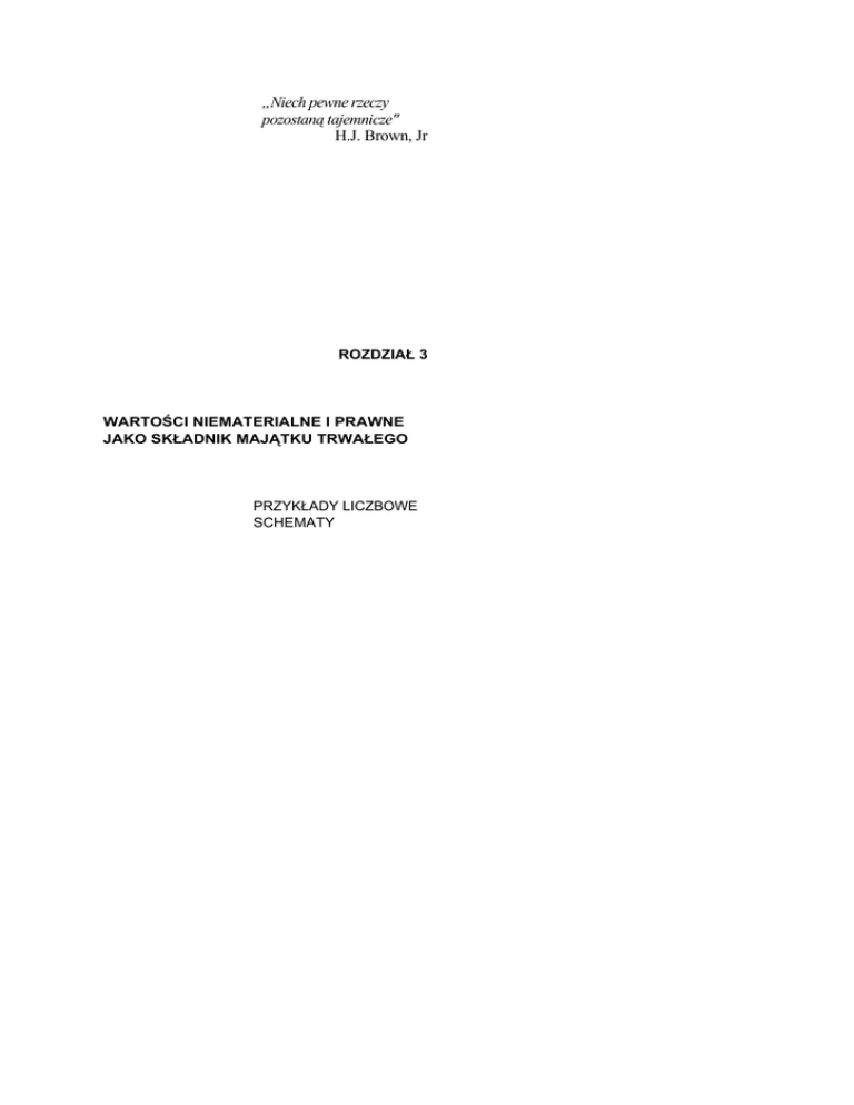 „Niech pewne rzeczy pozostaną tajemnicze" H.J. Brown, Jr ROZDZIAŁ 3 WARTOŚCI NIEMATERIALNE l PRAWNE JAKO SKŁADNIK MAJĄTKU TRWAŁEGO PRZYKŁADY LICZBOWE SCHEMATY 3.1. WARTOŚĆ FIRMY — PRZEJAW SKUTKÓW TRANSAKCJI NABYCIA PRZEDSIĘBIORSTWA Zadanie 51 Firma kosmetyczna AROMAT Spółka z o.o. z dniem 01.07.1999 r. postanowiła zakupić Spółkę KOSMETYK-LUX Spółka z o.o., w celu wzmocnienia pozycji na rynku. Z uwagi na formę organizacyjno-prawną Spółki AROMAT, nie zachodziła potrzeba wyceny rynkowej majątku trwałego Spółki KOSMETYK-LUX. Wycena majątku netto kupowanej Spółki została dokonana zatem na podstawie bilansu majątkowego, sporządzonego na dzień 31.05.1999 r. Ze sporządzonego dla potrzeb wyceny bilansu wynikało, że suma aktywów wynosiła 2 800 000 zł, a zobowiązania wynosiły l 700 000 zł. Na podstawie oszacowanego retrospektywnie przeciętnego strumienia dochodu ustalono wartość dochodową Spółki; wynosiła ona l 500 000 zł (przeciętny roczny poziom zysku netto 270 000 zł; stopa dyskontowa 18%; wartość dochodową ustalono jako iloraz zysku netto i stopy dyskontowej — założono zatem generowanie stałego strumienia dochodu w czasie nieograniczonym przy poziomie stopy dyskontowej 18 punktów procentowych). W wyniku negocjacji ustalono cenę transakcyjną Spółki w wysokości l 300 000 zł (posłużono się metodą berlińską — jest to średnia arytmetyczna wartości majątkowej i dochodowej). Z tak ukształtowanego poziomu ceny transakcyjnej oraz majątku netto wykazanego w bilansie na moment sprzedaży wynika, że wartość firmy jest wielkością dodatnią (goodwill). Na moment transakcji zakupinsprzedaży, Spółki AROMAT i KOSME-TYK-LUX wykazywały następujące stany składników majątku i kapitału (w zł): Wyszczególnienie AROMAT KOSMETYK-LUX Wartości niematerialne i prawne (Wp) 280000 178000 * oprogramowanie komputerów * prawo wieczystego użytkowania gruntu * licencje na produkcję kremu do twarzy dla skóry wrażliwej 120000 160000 52000 41 000 85000 Środki trwałe (Wp) Inwestycje rozpoczęte Umorzenie wartości niemate rialnych i prawnych 9 220 000 — 140000 1 372 000 500000 108000 Umorzenie środków trwałych 3 720 000 672000 165 Materiały 295 000 310 000 Produkty gotowe Półprodukty i produkty w toku Należności od odbiorców (z tytułu dostaw i usług) Pozostałe należności Papiery wartościowe przeznaczone do obrotu Środki pieniężne w kasie Środki pieniężne w banku Razem aktywa Kapitał udziałowy Kapitał zapasowy Kapitał rezerwowy 305 000 144 000 2 560 000 56000 110000 30000 3 160 000 12 300 000 7 000 000 1 400 000 200000 260 000 90000 1 040 000 30000 — — 100 000 3 100 000 700 000 250 000 200 000 Zobowiązania długoterminowe (kredyt inwestycyjny) Zobowiązania wobec dostawców ( z tytułu dostaw i usług) — 2 940 000 800 000 960 000 Zobowiązania wekslowe Zobowiązania wobec instytucji publicznoprawnych (z tytułu podatków i ubezpieczeń) Zobowiązania wobec pracowników (z tytułu wynagrodzeń) 204 000 41 000 60000 45000 65000 5000 Pozostałe zobowiązania Zakładowy Fundusz Świadczeń Socjalnych 252 000 148 000 15000 65000 Przychody przyszłych okresów Razem pasywa 50000 12 300 000 — 3 100 000 W dniu 01.07.1999 r. AROMAT Spółka z o.o. wystawiła polecenie przelewu na rzecz udziałowców byłej Spółki KOSMETYK-LUX (w proporcjach podanych w trakcie negocjacji), opiewające na kwotę l 300 000 zł. W zamian zostały przejęte składniki majątku (aktywa) i zobowiązania (długoterminowe i bieżące). Należy: 1. Obliczyć wartość firmy i podać potencjalne czynniki warunkujące powstanie dodatniej wartości firmy; jak sądzisz, czy rynkowa wycena środków trwałych wpłynęłaby na inne ukształtowanie wartości firmy? 2. Sporządzić bilans otwarcia dla Spółki AROMAT Spółka z o.o. po dokonaniu zakupu zorganizowanej jednostki — Spółki KOSMETYK-LUX Spółka z o.o. 3. Odpowiedzieć na pytanie — czy zakup majątku Spółki KOSMETYK-LUX miał wpływ na wielkość kapitału własnego Spółki AROMAT; uzasadnić odpowiedź. 166 Problemy do dyskusji: 1. Dodatnia a ujemna wartość firmy — przyczyny powstania, skutki bilansowe (u kogo — nabywcy czy sprzedawcy?). 2. Specyfika składnika „wartość firmy". 3. Wartość przedsiębiorstwa a wartość firmy; wartość przedsiębiorstwa a cena transakcyjna przedsiębiorstwa. Zadanie 52 Państwowe Przedsiębiorstwo Budownictwa Specjalistycznego (PPBS) w ostatnich latach coraz trudniej „radzi sobie" na rynku. Jego przestarzały park maszynowy, niemal w 90% zużyte środki transportu (w tym specjalistyczne), stają się jednym z głównych powodów pogarszającej się jakości usług, przedłużających się terminów realizacji robót, itp. Z roku na rok wzrastające w szybkim tempie koszty remontów powodują wzrost kosztów stałych Przedsiębiorstwa, co znacznie zawyża ceny ofert zgłaszanych do przetargów. Płynność finansowa Przedsiębiorstwa ulega pogorszeniu, przez co nie ma możliwości wygospodarowania środków pieniężnych na cele inwestycyjne. Wymienione powody stały się przesłanką podjęcia procedury prywatyzacyjnej PPBS. W tym celu zlecono firmie consultingowej TEMPUS, wyspecjalizowanej w wycenach przedsiębiorstw, opracowanie elaboratu wycenowego, uwzględniającego: * analizę prawną, * retro- i prospektywną analizę ekonomiczną, * operat wyceno wy środków trwałych (wycena rynkowa), * szacunkowe wartości przedsiębiorstwa, wynikające z wielowariantowości procedur obliczeniowych (metoda majątkowa, metody dochodowe i metody mieszane). Za moment wyceny przyjęto dzień 31.12.1998 r. Z przygotowanego zestawu opracowań wynikały następujące informacje: * wartość majątku netto (w tyś. zł) Wyszczególnienie I. Majątek trwały w tym środki trwałe II. Majątek obrotowy w tym należności III. Zobowiązania długoterminowe IV. Zobowiązania bieżące w tym wobec dostawców Wartość księgowa 1 