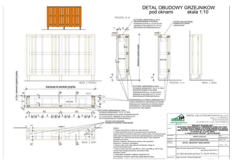 DETAL OBUDOWY GRZEJNIKÓW pod oknami skala 1:10