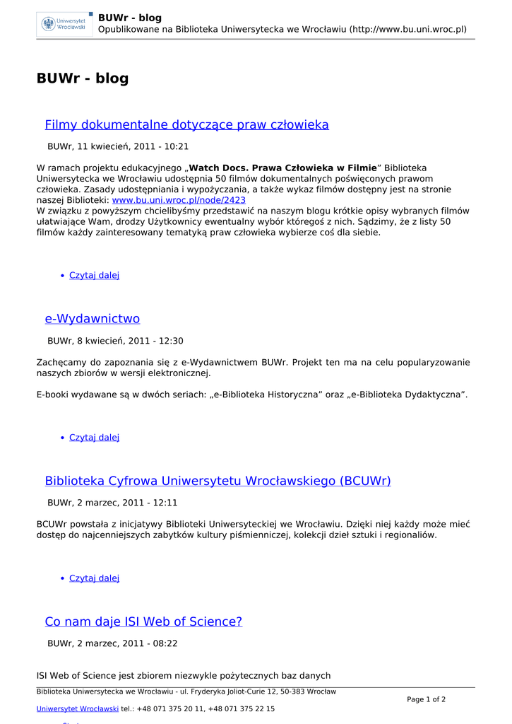 BUWr - blog - Biblioteka Uniwersytecka we Wrocławiu