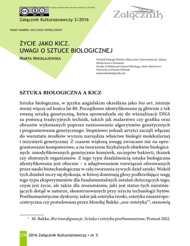 Życie jako kicz. Uwagi o sztuce biologicznej