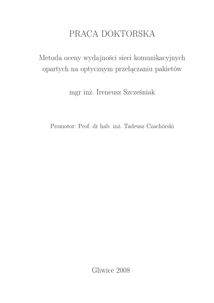 Promotor: Prof. dr hab. inż. Tadeusz Czachórski
