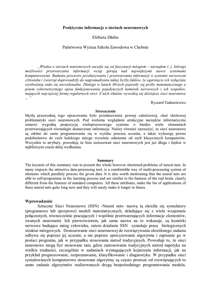 Referat-sieci neuronowe - Państwowa Wyższa Szkoła Zawodowa w
