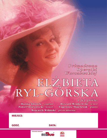 Primadonna Operetki Warszawskiej EL¯ BIETA RYL-GÓRSKA i jej goœcie: Ryszard Wojtkowski − tenor Hanna Zdunek − sopran Eugeniusz Majchrzak − piano Paweł Świętorecki − tenor Wojciech Wiliński − prowadzenie MIEJSCE: GODZ. DATA: SPONSORZY KONCERTU Sp. z o.o.