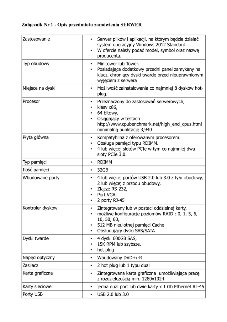 Załącznik Nr 1 - Opis przedmiotu zamówienia SERWER