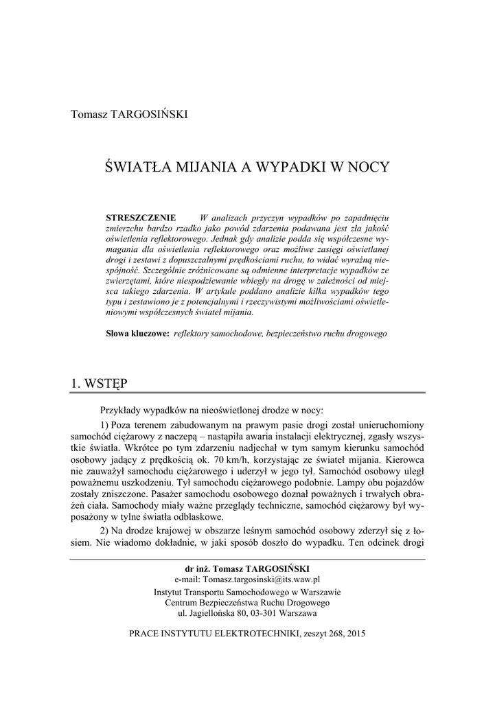 światła mijania a wypadki w nocy - Prace Instytutu Elektrotechniki