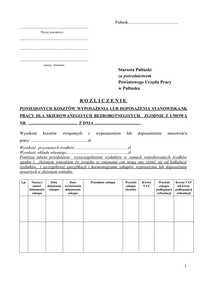 rozliczenie - Powiatowy Urząd Pracy w Pułtusku