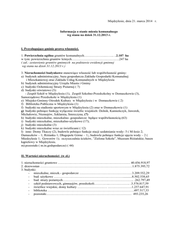 Międzylesie, dnia 21. marca 2014 r. Informacja o stanie mienia