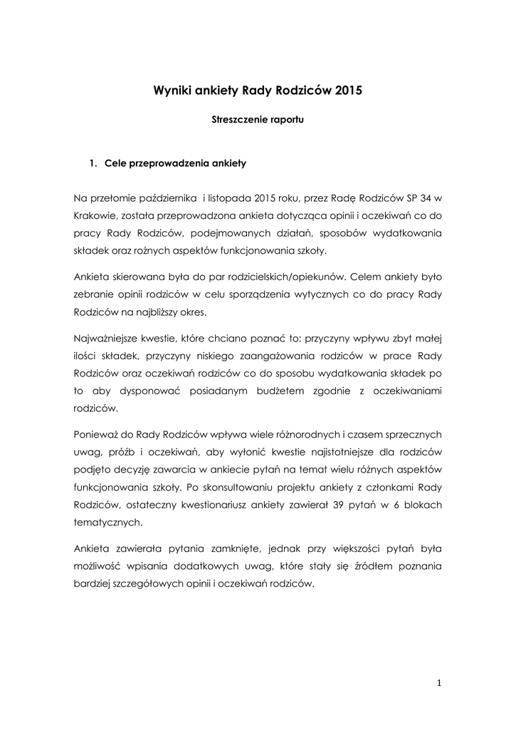 Wyniki ankiety – streszczenie - Strona Rady Rodziców SP34 Kraków