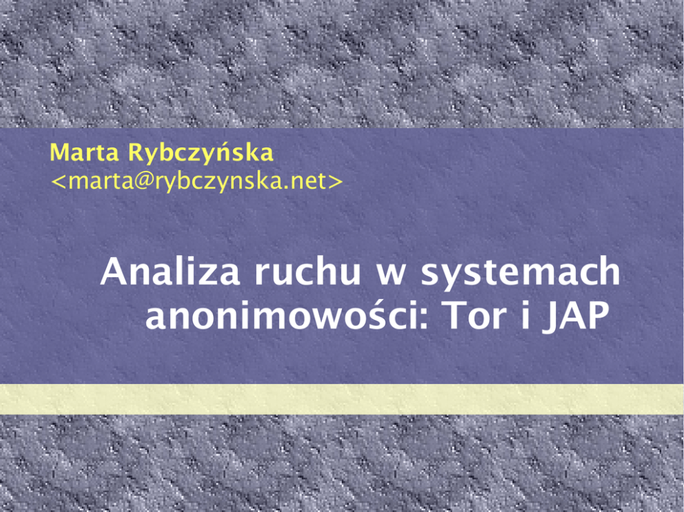 Analiza ruchu w systemach anonimowości: Tor i JAP