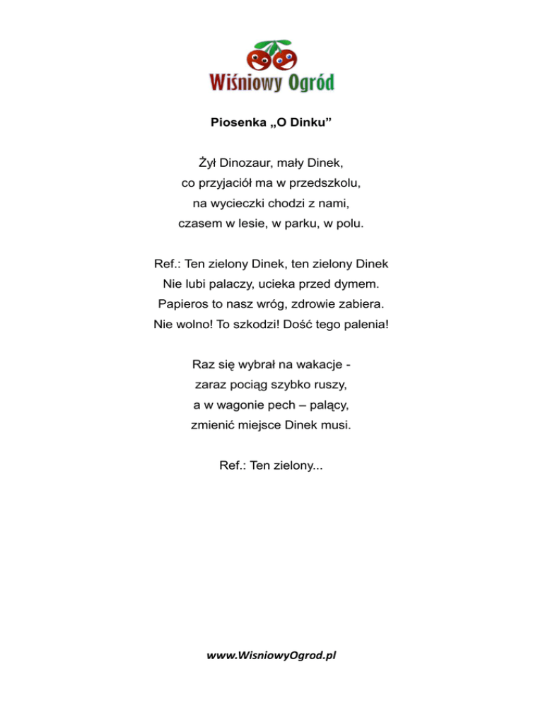 www.WisniowyOgrod.pl Piosenka „O Dinku” Żył Dinozaur, mały