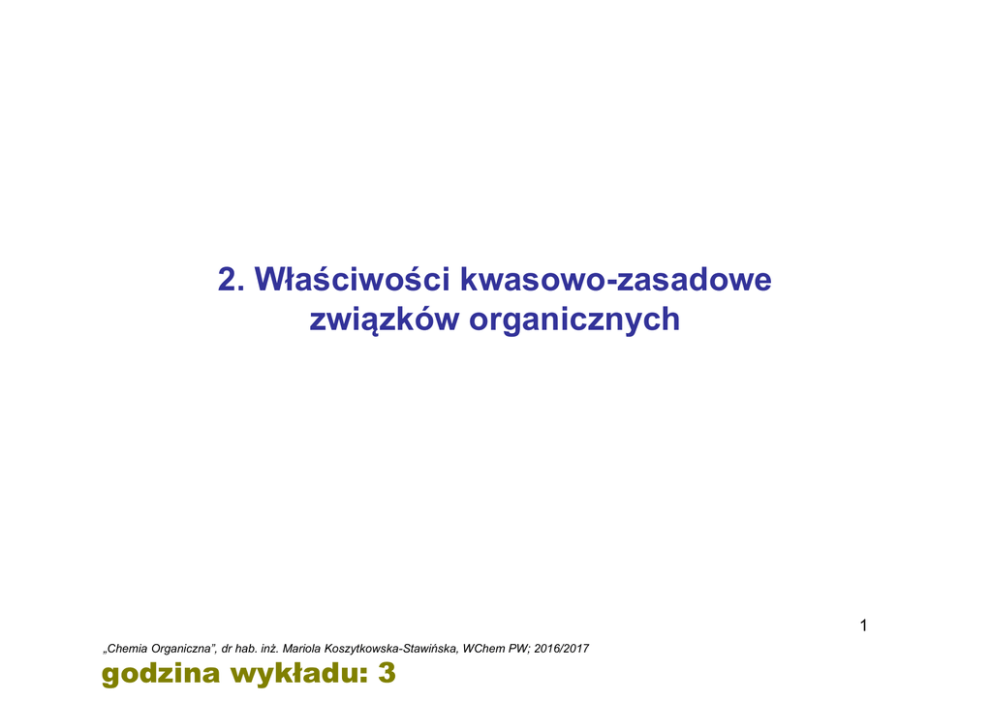 2. Właściwości kwasowo-zasadowe związków organicznych
