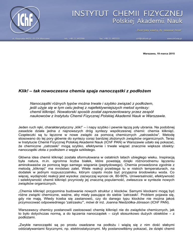 Klik! – tak nowoczesna chemia spaja nanocząstki z