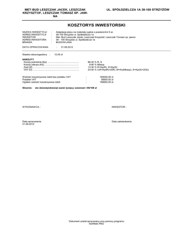 kosztorys inwestorski - Met-Bud