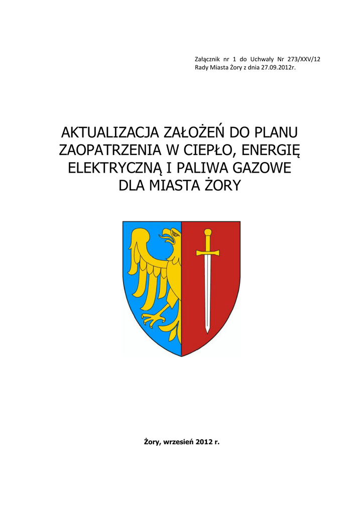 Załącznik nr 1 do Uchwały Nr 273/XXV/12 Rady Miasta Żory z dnia 27.09.2012r. AKTUALIZACJA ZAŁOŻEŃ DO PLANU ZAOPATRZENIA W CIEPŁO, ENERGIĘ ELEKTRYCZNĄ I PALIWA GAZOWE DLA MIASTA ŻORY Żory, wrzesień 2012 r. Aktualizacja założeń do planu zaopatrzenia w ciepło, energię elektryczną i paliwa gazowe BIURO INŻYNIERSKIE - DORADZTWO ENERGETYCZNE Arkadiusz Osicki Urząd Miasta Żory Al. Wojska Polskiego 25, 44-240 Żory tel. (32) 43-48-200, fax: (32) 43-50-780 NIP: 651-10-01-647; REGON: 276255542 e-mail: [email protected] ul. Wandy 32a/2, 41 – 500 Chorzów tel.: (32) 209 55 46, kom. 506 580 610 NIP: 642-223-48-58; REGON 242743274 e-mail: [email protected] Zespół autorski: Arkadiusz Osicki Tomasz Zieliński Mariusz Bogacki Współpraca ze strony Urzędu Miasta Żory: Bronisław Jacek Pruchnicki - Doradca Prezydenta ds. Infrastruktury Krzysztof Wierzycki - Zespół Zarządzania Energią Zofia Wieczorek - Zespół Zarządzania Energią Elżbieta Wysocka - Zespół Zarządzania Energią Autorzy opracowania serdecznie dziękują za pomoc i poświęcony czas wszystkim osobom i instytucjom zaangażowanym w przygotowanie niniejszego dokumentu. Strona 2 z 276 Aktualizacja założeń do planu zaopatrzenia w ciepło, energię elektryczną i paliwa gazowe SPIS TREŚCI 1. PODSTAWA I CEL OPRACOWANIA ................................................................................ 6 1.1. 1.2. PODSTAWY FORMALNE OPRACOWANIA............................................................................................. 6 POLITYKA KRAJOWA, REGIONALNA I LOKALNA.................................................................................... 7 1.2.1. Kontekst krajowy........................................................................................................... 7 1.2.2. Kontekst regionalny ..................................................................................................... 11 1.2.3. Kontekst lokalny .......................................................................................................... 12 1.2.4. Kontekst międzynarodowy - polityka UE oraz świata ...................................................... 14 1.3. ROLA GMINY W ZAKRESIE ZAOPATRZENIA W ENERGIĘ ........................................................................ 16 1.3.1. Współpraca samorządów lokalnych............................................................................... 18 2. 2.1. 3. CHARAKTERYSTYKA MIASTA ŻORY ............................................................................ 21 POŁOŻENIE I WARUNKI NATURALNE .............................................................................................. 21 2.1.1. Wykorzystanie gruntów ............................................................................................... 22 2.1.2. Warunki klimatyczne.................................................................................................... 23 2.1.3. Analiza otoczenia społeczno-gospodarczego .................................................................. 26 2.1.3.1. Demografia ......................................................................................................... 26 2.1.3.2. Działalność gospodarcza ...................................................................................... 31 2.1.4. Zatrudnienie i bezrobocie ............................................................................................. 36 OCENA STANU AKTUALNEGO W ZAKRESIE ZAOPATRZENIA W ENERGIĘ .................. 39 3.1. 3.2. WPROWADZENIE ..................................................................................................................... 39 INWENTARYZACJA INFRASTRUKTURY BUDOWLANEJ ........................................................................... 40 3.2.1. Budynki mieszkalne ..................................................................................................... 44 3.2.2. Budynki użyteczności publicznej ................................................................................... 52 3.2.3. Obiekty handlowe, usługowe, przedsiębiorstwa produkcyjne, rzemiosło .......................... 54 3.2.4. Obiekty produkcji przemysłowej ................................................................................... 55 3.3. INWENTARYZACJA INFRASTRUKTURY ENERGETYCZNEJ ........................................................................ 57 3.3.1. System ciepłowniczy miasta ......................................................................................... 57 3.3.1.1. Informacje o systemie zasilania miasta w ciepło sieciowe - jednostki wytwórcze ..... 57 3.3.1.2. Sieć dystrybucyjna ciepła sieciowego .................................................................... 65 3.3.1.3. Odbiorcy i zużycie ciepła ...................................................................................... 67 3.3.1.4. Plany rozwojowe dla systemów ciepłowniczych na terenie miasta ........................... 72 3.3.1.5. Kotłownie lokalne i przemysłowe .......................................................................... 75 3.3.2. System gazowniczy ..................................................................................................... 77 3.3.2.1. Informacje ogólne o systemie zasilania miasta w gaz sieciowy ............................... 78 3.3.2.2. Sieć dystrybucyjna .............................................................................................. 80 3.3.2.3. Odbiorcy i zużycie gazu ....................................................................................... 82 3.3.2.4. Plany inwestycyjno - modernizacyjne .................................................................... 84 3.3.2.5. Ocena stanu systemu gazowniczego ..................................................................... 84 3.3.3. System elektroenergetyczny......................................................................................... 85 3.3.3.1. Informacje ogólne o systemie zasilania