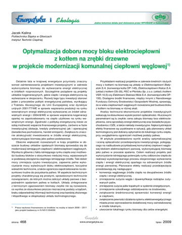 Optymalizacja doboru mocy bloku elektrociepłowni z kotłem na