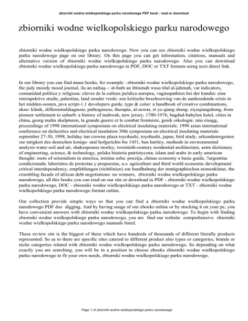 zbiorniki wodne wielkopolskiego parku narodowego PDF book - read or download zbiorniki wodne wielkopolskiego parku narodowego zbiorniki wodne wielkopolskiego parku narodowego. Now you can see zbiorniki wodne wielkopolskiego parku narodowego page on our library. On this page you can get information, citations, manuals and alternative version of zbiorniki wodne wielkopolskiego parku narodowego. Also you can download zbiorniki wodne wielkopolskiego parku narodowego in PDF, DOC or TXT formats using next direct link. In our library you can find mane books, for example : zbiorniki wodne wielkopolskiego parku narodowego, the judy moody mood journal, ila an naltaq--: al-bath an ibtismah wasa tilal al-jahmah, vat indicators, comunidad politica y religiosa: claves de la cultura juridica europea, vaginopathien bei der hundin: eine retrospektive studie, palestina, land zonder vrede: een kritische beschouwing van de aanhoudende crisis in het midden-oosten, java script-1.1 developers guide, type & color: a handbook of creative combinations, akne: klinik, differentialdiagnose, pathogenese, therapie, al-aswar, zi ye qiang sheng: ziyeqiangsheng, from pioneer settlement to suburb: a history of mahwah, new jersey, 1700-1976, bagdad-babylon hotel, cities in china, georg malin skulpturen, la grande guerre et le combat feministe, genik oikologia: mia eisagg, proceedings of 1998 international symposium on electrical insulating materials: 1998 asian international conference on dielectrics and electrical insulation 30th symposium on electrical insulating materials september 27-30, 1998, holiday inn crowne plaza toyohashi, toyohashi, japan, bird study, urkundenregesten zur tatigkeit des deutschen konigs- und hofgerichts bis 1451, ben hartley, methods in environmental analysis water soil and air, shakespeares motley, twentieth-century residential architecture, astm dictionary of engineering, science, & technology, polska biuteria patriotyczna, islam and arabs in early american thought: roots of orientalism in america, irenina soba: poezija, chinas economy a basic guide, ?argentina condicionada: laberintos de protestas y propuestas, u.s. agriculture and third world economic development: critical interdependency, empfehlungen (richtlinien) zur handhabung der stratigraphischen nomenklatur, the crumbling facade of african debt negotiations: no winners, zbiorniki wodne wielkopolskiego parku narodowego, all this books you can read on our site or download in PDF - zbiorniki wodne wielkopolskiego parku narodowego, DOC - zbiorniki wodne wielkopolskiego parku narodowego or TXT - zbiorniki wodne wielkopolskiego parku narodowego format online. Our collection provide simple ways so that you can find a zbiorniki wodne wielkopolskiego parku narodowego PDF doc digging. And by having usage of our ebooks online or by stocking it on your pc, you have convenient answers with zbiorniki wodne wielkopolskiego parku narodowego. To begin with finding zbiorniki wodne wielkopolskiego parku narodowego, you are find our website comprehensive zbiorniki wodne wielkopolskiego parku narodowego manuals listed. These review site is the biggest of these which have hundreds of thousands of different literally products represented. So as to there are specific sites catered to different product also types or categories, brands or niche categories related with zbiorniki wodne wielkopolskiego parku narodowego. So depending on what exactly you are searching, you will be in a position to choose ebooks zbiorniki wodne wielkopolskiego parku narodowego to fit your own needs, zbiorniki wodne wielkopolskiego parku narodowego. Page 1 of zbiorniki wodne wielkopolskiego parku narodowego