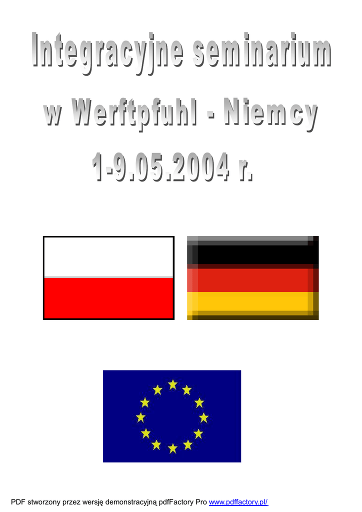 PDF stworzony przez wersję demonstracyjną pdfFactory Pro www.pdffactory.pl/ Co prawda w bardzo ,,okrojonym,, składzie, bo w 18 osób w tym tylko 6 z naszej szkoły, ( Marta Grzeszczak, Dorota Lemke, Katarzyna Lisek , Celina Małyska , Mariusz Puła, Tomasz Szyszka ) a reszta z sąsiedniej –RCEZ. Wyjechaliśmy wraz z panią prof. Elżbietą Karasińską na spotkanie polskiej młodzieży z niemiecką . Wycieczka trwała zaledwie 9 dni, ale wspomnienia zostaną co najmniej na 9 lat!!! DZIEŃ I (SOBOTA) Jest sobotni wieczór, ok. godz. 21.30, nasza ,,załoga,, gorączkowo czeka na autokar. Hura.... jest , ale będzie wesoło !!! Jeszcze tylko bagaże, zajęcie miejsca, pożegnanie z rodziną i możemy ruszać w drogę !!! Podróż jest długa (ok.14 godz.) i strasznie męcząca (a jednak Polska nie jest taka mała !) DZIEŃ II ( NIEDZIELA) Już dochodzi południe, robi się gorąco, a za oknem możemy podziwiać piękne niemieckie krajobrazy. Pierwsze wrażenia: wszystko równiutkie jak ,,od linijki, dużo zieleni, piękne domki i ogródki. Już nam się podoba !!! Wreszcie dojeżdżamy do Werftpfuhe, niewielkiej miejscowości, 32 km od Berlina. Już z dala widać nasz piękny i ogromny pensjonat, w którym mamy zamieszkać. Szybciutko wyskakujemy z autokaru, każdego ciekawi, co teraz się wydarzy. Niepewnie podążamy ku wejściu, a tu Polka Paulina i trzech Niemców - Oliver, Otto i Uwe serdecznie nas witają, zarówno po polsku, jak i po niemiecku. Super !!! Robi się milutko...Ciekawe co będzie dalej? Teraz zapraszają nas do stołówki, gdzie czeka już na nas pyszny obiad. Ale smakowało! A teraz możemy się rozpakować, mieszkamy w wygodnych pokojach (dwu- lub czteroosobowych z łazienkami). Dużo miejsca, świetne wyżywienie hm... ,,żyć nie umierać!,, 1 PDF stworzony przez wersję demonstracyjną pdfFactory Pro www.pdffactory.pl/ Ok. godz.16.00. odbywa się pierwsze spotkanie z niemiecką młodzieżą, zapoznanie z budynkiem, no i....nauka przez zabawę. Nasze umysły są już bogatsze o kilkanaście nowych słówek – świetny kurs – bez nudy!!! Jak ten czas płynie już 18.30 – kolacja, a zaraz po niej wieczorek integracyjny połączony z degustacją, wiec przygotowujemy się do niego solidnie - w kuchni! Teraz prezentacja w naszym barze. Przedstawiamy Niemcom typowe polskie potrawy, a oni prezentują nam swoje. Najciekawsze jest to, że z talerzy najszybciej znikają placki ziemniaczane (podobno nigdy takiej potrawy jeszcze nie jedli). Jesteśmy dumni z siebie, że jeszcze daliśmy radę przygotować: bigos, barszcz czerwony i dwa ciasta. Wieczór jest długi, ciekawy i na pewno nikt głodny nie siedzi. 2 PDF stworzony przez wersję demonstracyjną pdfFactory Pro www.pdffactory.pl/ DZIEŃ III ( PONIEDZIAŁEK) 8.30 - śniadanie (stosunkowo za wcześnie !), ten kto ustalał plan dnia zapewne mało śpi!!! Godzinę póżniej wspólne spotkanie na dużej sali - ,,Ergenizer,,. Tu każdy mógł się wykazać swoim poczuciem humoru i pomysłowością, bez względu na wiek każdy z Niemców ma coś charakterystycznego , więc na pewno uda nam się ich zapamiętać, tylko jeszcze potrzeba trochę czasu, bo na razie to będzie ciężko. Dalej już 12.30 – obiad i czas wolny do 15.00 (kawa z ciastkiem), następnie zajęcia i już kolacja. A po niej - Ognisko! Spiewamy polskie piosenki przy dzwiękach gitary, więc Niemcy też nie chcą być gorsi i również próbują. Świetnie się bawimy, tylko mało rozumiemy, całe szczęście że mamy tłumaczy ! I tak już dawno po północy, cóż, trzeba spać. Ciekawe, czy jutro również będzie tak interesująco? DZIEŃ IV ( WTOREK ) Słońce już wstało, do godz.9.30 powtarzają się te same czynności. A co ciekawego w dzisiejszym ,,Energizerze,,? Głuchy telefon... ale można się uśmiać ! Niemcom udało się ze zwykłego zwrotu ,,Lubię Cię,, utworzyć coś w nieznanym dotąd ludzkim języku Nam poszło trochę lepiej, ale też nie obyło się bez żadnego ,,skaleczenia,, ich języka. Dalej obiad, kawa, ciacho i zajęcia. Teraz rozmawiamy o rynku pracy w Unii Europejskiej, każdy może też bez obaw wyrazić tu swoje zdanie, czas płynie, już kolacja a po niej idziemy jeszcze na jedno spotkanie podsumowujące cały miniony dzień. Teraz mówimy o tym co nam się podobało a co nie i planujemy kolejny już, jutrzejszy dzień. Wieczór oczywiście znowu nasz! Tym razem idziemy na pogadanki z tutejszą młodzieżą do baru ,i o dziwo - już nie potrzebujemy tłumacza (chyba coś wynieśliśmy z lekcji niemieckiego i angielskiego, skoro zaczynamy się dogadywać!). 3 PDF stworzony przez wersję demonstracyjną pdfFactory Pro www.pdffactory.pl/ DZIEŃ V ( ŚRODA ) Już środek tygodnia, czas szybko płynie, nikt nie tęskni za domem. Tuż po ,,Energizerze,, mamy zamiar wybrać się na spacer po okolicy, więc planujemy trasę - 7 km kto zdoła tyle przejść? Nie było jednak tak żle. Potrafiliśmy się tak zintegrować z Niemcami, że aż nosili nas na rękach.JJJ Widzieliśmy ponadto kilka zacisznych miejsc, żywe konie i nieżywego jelenia! 4 PDF stworzony przez wersję demonstracyjną pdfFactory Pro www.pdffactory.pl/ Wracamy na kolejny pyszny obiad i udajemy się na spotkanie, gdzie dzielą całą grupę na cztery mniejsze polsko – niemieckie. Każdy ma prawo do wyboru. Od dzisiaj będziemy pracować już w mediach (film, radio , gazeta, plakat) Nasza twórczość musi dotyczyć Unii Europejskiej. Pierwsze plany, kilka propozycji, na pewno sobie poradzimy, choć będzie dużo pracy! Już po kolacji, znowu integracja ...tym razem w dyskotece. Niemcy świetnie się ruszają , my też pokazujemy na co nas stać. Każdy spocony wraca na górę, ale oczywiście przed snem omawiamy miniony dzień. DZIEŃ VI ( CZWARTEK ) Dzisiaj chyba najciekawszy ze wszystkich dni - wycieczka do Berlina. Udajemy się na spotkanie o związkach zawodowych oraz żeby zobaczyć tę słynną stolice Niemiec. Berlin 5-razy większy od Warszawy,