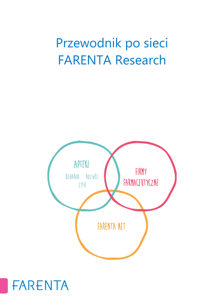 Przewodnik po sieci FARENTA Research FARENTA Research - przewodnik 2 (7) FARENTA FARENTA to spójne połączenie kompetencji przemysłu farmaceutycznego z profesjonalizmem pracowników aptek i rozwiązaniami elektronicznymi. Pracownicy firmy FARENTA to specjaliści przemysłu farmaceutycznego, którzy zapewniają najwyższy poziom usług związanych z opracowaniem leków, ich wprowadzeniem na rynek i obiegiem. FARENTA Net, poprzez dostarczanie innowacyjnych rozwiązań, przyczynia się do poszerzenia świadomości farmaceutów na temat poszczególnych produktów oraz wzbogaca współpracę firm farmaceutycznych i aptek. FARENTA podnosi poziom know-how związanego z międzynarodowym środowiskiem farmaceutycznym poprzez szkolenie specjalistów i rozwój zaawansowanych usług, uwzględniających przyszłe potrzeby branży farmaceutycznej. SPIS TREŚCI 1. Sieć badawcza Farenta – idea i założenia ......................................................................... 3 2. Udział w sieci Farenta Research ............................................................................................ 3 3. Jak dołączyć do Sieci? .............................................................................................................. 4 4. Warunki wynagradzania – honoraria za prowadzenie badań ................................... 4 5. Jak działa sieć badawcza? ....................................................................................................... 5 6. Projektowanie badań ................................................................................................................ 6 7. Rodzaje Badań............................................................................................................................. 6 8. Poufność i bezpieczeństwo .................................................................................................... 7 9. Dostęp do wyników badań ..................................................................................................... 7 FARENTA Research - przewodnik 3 (7) 1. SIEĆ BADAWCZA FARENTA – IDEA I ZAŁOŻENIA Sieć badawcza FARENTA Research to inicjatywa naukowa mająca na celu zwiększenie potencjału badawczo – rozwojowego przedsiębiorców i instytucji zajmujących się opieką zdrowotną w Polsce. Podobne sieci istnieją w innych krajach, np. w Stanach Zjednoczonych, Holandii, Wielkiej Brytanii i w Finlandii, gdzie apteki tworzą grupy i wspólnie prowadzą badania codziennej praktyki ochrony zdrowia. Farmaceuci mają unikalną możliwość kontaktowania się z różnymi pacjentami. Są też najbardziej dostępnymi dla pacjentów profesjonalistami w dziedzinie ochrony zdrowia. Ich fachowa wiedza medyczna oraz doświadczenie w kontaktach z pacjentami, stanowią olbrzymi potencjał badawczy i mogą zapewnić odpowiednią efektywność i jakość prowadzenia badań. Badania realizowane w ramach sieci FARENTA Research to badania epidemiologiczne, medyczne i farmaceutyczne, prowadzone z zaangażowaniem pacjentów z aptek ogólnodostępnych. Badaczami są farmaceuci, którzy po odpowiednim przygotowaniu, kontaktują się z pacjentami i zapraszają ich do udziału w badaniach. Apteki, jako ośrodki badawcze, rekrutują pacjentów na terenie całego kraju, co pozwala na szybkie zebranie potrzebnych danych i daje możliwość uogólnienia ich na rzeczywistą sytuację w kraju. Dane uzyskiwane w trakcie prowadzenia wywiadów zapisywane są w specjalnym systemie elektronicznym. Członkowie sieci FARENTA Research są wynagradzani za udział w badaniach, a po zakończeniu badań otrzymują dostęp do wyników. 2. UDZIAŁ W SIECI FARENTA RESEARCH Do sieci FARENTA Research przystąpić może przystąpić każdy przedsiębiorca, który prowadzi ogólnodostępną aptekę / apteki. Współpraca z siecią jest możliwa niezależnie od formy własności aptek oraz ich liczby. Kluczowym dla powodzenia współpracy i odniesienia obopólnych korzyści jest zaangażowanie w projekty badawcze magistrów i techników farmacji pracujących w aptekach. Korzyści z udziału w sieci FARENTA Research to: • wynagrodzenie za realizację badań, • przewaga rynkowa dzięki rozwojowi relacji z pacjentami przez rozszerzenie możliwości dyskusji i profesjonalnego doradztwa, • rozwój kompetencji i wiedzy personelu apteki, jako badaczy opieki medycznej i farmaceutycznej, • dostęp do raportów z wynikami badań, umożliwiający optymalizację i ciągły rozwój usług aptek. FARENTA Research - przewodnik 4 (7) 3. JAK DOŁĄCZYĆ DO SIECI? Współpraca rozpoczyna się na podstawie umowy ramowej, która zawiera ogólne warunki współpracy, obowiązki stron, zasady poufności przekazywanych sobie informacji oraz prawa dostępu do wyników badań. W umowie określa się także listę aptek, które będą ośrodkami badawczymi oraz listę farmaceutów, którzy będą brać udział w prowadzeniu badań. Sama umowa ramowa nie zobowiązuje do prowadzenia badań. Po podpisaniu umowy ramowej FARENTA tworzony jest w systemie informatycznym profile przedsiębiorcy, należących do niego aptek i pracujących w nich farmaceutów. Przedsiębiorca i osoby wskazane przez niego mają stały dostęp do systemu, umożliwiający wgląd w dane aptek oraz rodzaj i status prowadzonych badań. Przed rozpoczęciem badania FARENTA przesyła ofertę badania zawierającą jego szczegółowy opis i informacje o wynagrodzeniu za realizacje pojedynczego wywiadu. Na podstawie oferty Przedsiębiorca decyduje czy jego placówka(i) będzie(ą) brały udział w danym projekcie badawczym. Jeśli tak, jego badacze uzyskują dostęp do materiałów informacyjnych o badaniu a potem rozpoczną badanie rozpocząć badania. 4. WARUNKI WYNAGRADZANIA – HONORARIA ZA PROWADZENIE BADAŃ Badania prowadzone w ramach sieci FARENTA Research różnią się od siebie m.in. kryteriami rekrutacji pacjentów, liczbą pytań zawartych w ankiecie i sposobem prowadzenia wywiadu, c