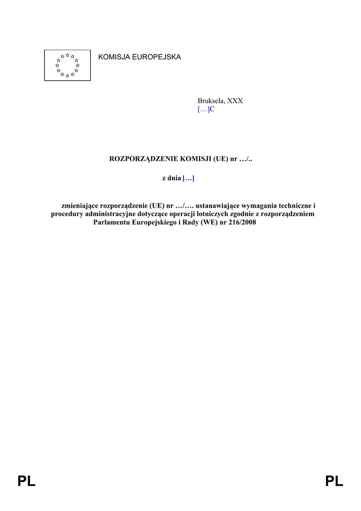 KOMISJA EUROPEJSKA Bruksela, XXX […]C ROZPORZĄDZENIE KOMISJI (UE) nr …/.. z dnia […] zmieniające rozporządzenie (UE) nr …/…. ustanawiające wymagania techniczne i procedury administracyjne dotyczące operacji lotniczych zgodnie z rozporządzeniem Parlamentu Europejskiego i Rady (WE) nr 216/2008 PL PL ROZPORZĄDZENIE KOMISJI (UE) nr …/.. z dnia [...] r. zmieniające rozporządzenie (UE) nr …/…. ustanawiające wymagania techniczne i procedury administracyjne dotyczące operacji lotniczych zgodnie z rozporządzeniem Parlamentu Europejskiego i Rady (WE) nr 216/2008 KOMISJA EUROPEJSKA, uwzględniając Traktat o funkcjonowaniu Unii Europejskiej, uwzględniając rozporządzenie (WE) nr 216/2008 Parlamentu Europejskiego i Rady z dnia 20 lutego 2008 r. w sprawie wspólnych zasad w zakresie lotnictwa cywilnego i utworzenia Europejskiej Agencji Bezpieczeństwa Lotniczego oraz uchylające dyrektywę Rady 91/670/EWG, rozporządzenie (WE) nr 1592/2002 oraz dyrektywę 2004/36/WE (1), w szczególności jego art. 8 ust. 5, a także mając na uwadze, co następuje: (1) Rozporządzenie (UE) nr …/… ustanawia wymagania techniczne i procedury administracyjne dotyczące operacji lotniczych. (2) Zgodnie z art. 22 ust. 2 rozporządzenia (WE) nr 216/2008, przepisy wykonawcze dotyczące czasu lotu i służby oraz wymogów w zakresie wypoczynku powinny początkowo obejmować wszystkie istotne postanowienia podczęści Q załącznika III do rozporządzenia (EWG) nr 3922/91, z uwzględnieniem najnowszych ustaleń naukowych i technicznych. (3) Rozporządzenie (UE) nr …/… należy zatem zmienić, wprowadzając do niego ograniczenia czasu lotu i służby oraz wymogi dotyczące wypoczynku. (4) Rozporządzenie (UE) nr …/… uwzględnia ograniczenia i minimalne standardy ustanowione już na mocy dyrektywy 2000/79/WE (5). Ograniczenia określone w tej dyrektywie powinny być zawsze przestrzegane przez personel pokładowy w lotnictwie cywilnym. Zakres przepisów rozporządzenia (UE) nr …/… oraz innych postanowień zatwierdzonych zgodnie z niniejszym rozporządzeniem w żadnym przypadku nie może być szerszy, co zapewniałoby temu personelowi mniejszą ochronę. Postanowienia niniejszego rozporządzenia obowiązują bez uszczerbku dla krajowych przepisów socjalnych, zapewniających większą ochronę. (5) Europejska Agencja Bezpieczeństwa Lotniczego opracowała projekt przepisów wykonawczych i przedłożyła go Komisji Europejskiej jako opinię zgodnie z art. 19 ust. 1 rozporządzenia (WE) nr 216/2008. (6) Środki przewidziane w niniejszym rozporządzeniu są zgodne z opinią Komitetu ustanowionego na mocy art. 65 rozporządzenia (WE) nr 216/2008. PRZYJMUJE NINIEJSZE ROZPORZĄDZENIE: (1) PL Dz.U. L 79 z 13.03.2008, s. 1. 1 PL Artykuł 1 W rozporządzeniu (UE) nr …/…. wprowadza się następujące zmiany: 1. W art. 2 wstawia się następującą definicję: „«Działalność taksówki powietrznej» oznacza, na potrzeby ograniczeń czasu lotu i służby, nierozkładowe operacje zarobkowego transportu lotniczego wykonywane na żądanie przy użyciu samolotu o maksymalnej operacyjnej konfiguracji miejsc pasażerskich (MOPSC) nieprzekraczającej 19.”. 2. Art. 8 ust. 1 lit. a) zastępuje się następującą treścią: „Artykuł 8 Ograniczenia czasu lotu Ograniczenia czasu lotu i służby podlegają następującym przepisom: Operatorzy wykonujący operacje zarobkowego transportu lotniczego przy użyciu samolotów spełniają przepisy podczęści FTL załącznika III. Przepisom podczęści FTL załącznika III nie podlegają następujące operacje zarobkowego transportu lotniczego: działalność taksówki powietrznej prowadzona przy użyciu samolotu; operacje służb ratownictwa medycznego wykonywane przy użyciu samolotu oraz operacje samolotowe wykonywane z jednym pilotem. Do czasu przyjęcia przepisów wykonawczych dla tych operacji zastosowanie mają przepisy art. 8 ust. 4 oraz podczęści Q załącznika III do rozporządzenia (EWG) nr 3922/91, a także odpowiednie zwolnienia krajowe opracowane na podstawie ocen ryzyka w zakresie bezpieczeństwa przeprowadzonych przez właściwy organ.”. 3. W załączniku II dodaje się nowe ustępy w następującym brzmieniu: „ARO.OPS.230 Ustalanie grafików zakłócających Na potrzeby przepisów FTL, właściwy organ ustala, zgodnie z definicjami „wczesnego typu” i „późnego typu” podanymi w ust. ORO.FTL.105, który z tych dwóch typów grafików zakłócających ma zastosowanie do wszystkich znajdujących się pod jego nadzorem operatorów wykonujących zarobkowe przewozy lotnicze.”. ARO.OPS.235 Zatwierdzanie indywidualnego programu określania czasu lotu Właściwy organ zatwierdza indywidualne programy określania czasu lotu proponowane przez operatorów wykonujących zarobkowe przewozy lotnicze, jeżeli dany operator zademonstrował zgodność z przepisami rozporządzenia (WE) nr 216/2008 oraz podczęści FTL załącznika III do niniejszego rozporządzenia. PL (a) Zawsze kiedy postanowienia proponowanego przez operatora programu określania czasu lotu odbiegają od stosownych specyfikacji certyfikacyjnych wydanych przez Agencję, właściwy organ stosuje procedurę opisaną w art. 22 ust. 2 rozporządzenia (WE) nr 216/2008. (b) Zawsze kiedy proponowany przez operatora program określania czasu lotu wykorzystuje odstępstwa od przepisów wykonawczych, właściwy 2 PL organ stosuje procedurę opisaną w art. 14 ust. 6 rozporządzenia (WE) nr 216/2008. (c) 4. Po wdrożeniu, zatwierdzone różnice i odstępstwa podlegają niezależnej ocenie naukowej i medycznej. Do załącznika III włącza się nową podczęść FTL zgodnie z przepisami załącznika do niniejszego rozporządzenia. Artykuł 2 Trzy lata po wejściu w życie postanowień dotyczących ograniczeń czasu lotu i służby oraz wymogów dotyczących wypoczynku zawartych w załącznikach II i III do rozporządzenia (UE) …/… Agencja dokonuje oceny ich skuteczności. Ocena 
