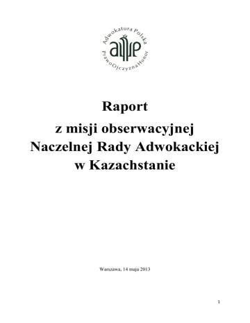 Raport z misji obserwacyjnej Naczelnej Rady Adwokackiej w Kazachstanie Warszawa, 14 maja 2013 1 Wstęp W dniach 21-29 kwietnia delegacja Naczelnej Rady Adwokackiej przebywała z misją obserwacyjną w Republice Kazachstanu. Z prośbą o utworzenie misji monitorującej stan przestrzegania praw i wolności obywatelskich w Kazachstanie do Komisji Wizerunku Zewnętrznego i Działalności Pro Bono przy NRA zwróciła się w grudniu 2012 r. Fundacja Otwarty Dialog, której statutowym celem jest propagowanie europejskich standardów praw człowieka. W skład misji weszli: adw. dr Monika Strus-Wołos, członek Prezydium NRA i przewodnicząca Komisji Wizerunku Zewnętrznego i Działalności Pro Bono przy NRA szefowa misji, adw. Magdalena Fertak, wiceprzewodnicząca tej Komisji, adw. Justyna Mazur, wicedziekan ORA w Bydgoszczy, adw. Wojciech Mądrzycki, członek Komisji Kształcenia Aplikantów NRA (ta czwórka uczestniczyła w misji obserwacyjnej NRA podczas wyborów parlamentarnych w Gruzji), a także adw. Jacek Świeca, który stale współpracuje z Fundacją Otwarty Dialog. Łącznie odbyliśmy prawie trzydzieści spotkań w trzech miastach. W związku z poważnymi sygnałami o narastających naruszeniach praw i wolności obywatelskich w Kazachstanie, Naczelna Rada Adwokacka postanowiła we współpracy z Fundacją Otwarty Dialog zorganizować misję obserwacyjną. Traktujemy to jako spłatę długu jaki ma Polska wobec organizacji i społeczeństw Europy Zachodniej, które w okresie PRL pomagały naszym obywatelom w walce o demokrację. Delegacja NRA pojechała na zaproszenie Kazachstańskiego Międzynarodowego Biura Praw Człowieka i Rządów Prawa. Znaczącą część kosztów misji NRA pokryła Fundacja Otwarty Dialog. Niemal w przeddzień naszego wyjazdu Parlament Europejski podjął rezolucję wzywającą władze Kazachstanu do przestrzegania zasad OBWE oraz do zwolnienia więźniów politycznych i ochrony wolności słowa. Parlament Europejski zaapelował do krajów członkowskich Unii Europejskiej o zaangażowanie na rzecz obrony represjonowanych w tym kraju. Znaczący udział w tworzeniu rezolucji miała Fundacja Otwarty Dialog. Kazachstan ma szczególne znaczenie wśród krajów postsowieckich: jest dziewiątym co do wielkości państwem świata, a jego gospodarka rozwija się w błyskawicznym tempie, będąc po Rosji i Ukrainie trzecią największą gospodarką strefy Wspólnoty Niepodległych Państw. Państwo to jest największym na świecie eksporterem uranu, jednym z najważniejszych eksporterów ropy naftowej, gazu ziemnego i bawełny. Kazachstan jest także znaczącym partnerem handlowym Polski (obroty ok. 2 mld dolarów). W Astanie otworzyła się też pierwsza polska kancelaria prawna. Przestrzeganie przez władze Kazachstanu standardów europejskich oraz wyeliminowanie korupcji ma zatem szczególne znaczenie dla całego regionu, jak również dla możliwości prowadzenia biznesu na transparentnych i przewidywalnych zasadach. 2 Warto dodać, że mieliśmy problem z uzyskaniem wizy, gdyż mimo upływu terminu przez wiele dni otrzymywaliśmy w ambasadzie Kazachstanu informację, że nie ma jeszcze decyzji. Ostatecznie wizy otrzymaliśmy na jeden dzień przed planowanym wylotem, a ich uzyskanie zawdzięczamy osobistemu zaangażowaniu znaczących w Polsce osób i instytucji. Cele i zadania naszej misji obserwacyjnej można podzielić na trzy segmenty: - nawiązanie kontaktów roboczych z Adwokaturą i adwokatami Kazachstanu w celu wymiany doświadczeń w zakresie reformy prawa karnego oraz służeniu pomocą kazachstańskim kolegom, którzy od podstaw budują powoli samorząd zawodowy; - obserwacja przestrzegania praw i wolności obywatelskich ze szczególnym uwzględnieniem wolności słowa i mediów; - monitorowanie sytuacji więźniów politycznych. I. Nawiązanie kontaktów roboczych z Adwokaturą i adwokatami Kazachstanu: 1. Spotkanie z Ałmatyńskim Związkiem Adwokatów 22 kwietnia 2013 r. odbyliśmy spotkanie z Ałmatyńskim Związkiem Adwokatów w Ałmatym. Pani Mecenas Gulnar Bakirowna Baygazina, członek Prezydium Ałmatyńskiego Kolegium Adwokatów przyjęła nas w siedzibie Związku. Opowiedziała o obowiązującym w Kazachstanie trybie dojścia do zawodu adwokata oraz strukturze Związku Adwokatów. W 2010 r. weszła w życie nowa ustawa o adwokaturze, która stworzyła nowe ramy wykonywania zawodu adwokata w Republice Kazachstanu. Przede wszystkim w Kazachstanie pomoc prawną może świadczyć w zasadzie każdy prawnik. Adwokacka pomoc prawna zastrzeżona jest jedynie do obrony w postępowaniach karnych. Aby zostać adwokatem należy zdać egzamin na aplikację adwokacką (stażirowkę), która trwa od pół do jednego roku. Egzamin końcowy składa się z dwóch części: testu (100 pytań/90 minut) oraz części ustnej. Po zdaniu egzaminu przed komisją zorganizowaną przez Związek Adwokatów (3 adwokatów, a poza tym naukowcy, przedstawiciele Ministerstwa Sprawiedliwości i parlamentu) – absolwent sam występuje o licencję na wykonywanie zawodu. Wydaje ją Komitet Usługi Rejestracji i Pomocy Prawnej Ministerstwa Sprawiedliwości Republiki Kazachstanu. Odbywa się to w trybie administracyjnym regulowanym przez szereg przepisów z kilku źródeł prawa. Do 2012 r. w Kazachstanie funkcjonowały w niektórych miastach izby adwokackie, z której każda uchwalała własne zasady etyki, własne zasady funkcjonowania. Przynależność do izby dla adwokatów jest obowiązkowa. Aktualnie w Ałmatyńskim Związku 3 Adwokatów zarejestrowanych jest ok. 750 adwokatów. Istnieją 3 formy wykonywania zawodu tj. konsultant prawny pracujący przy izbie, indywidualna praktyka we własnej kancelarii oraz zespoły adwokackie. Podstawową władzą Związku są Zgromadzenie Ogólne, wybierające prezydium Związku, komisję etyki i komisję rewizyjną. Art. 6 prawa o adwokaturze Republiki Kazachstanu przewiduje bezpłatną pomoc prawną dla określonej grupy osób (np. w sprawa